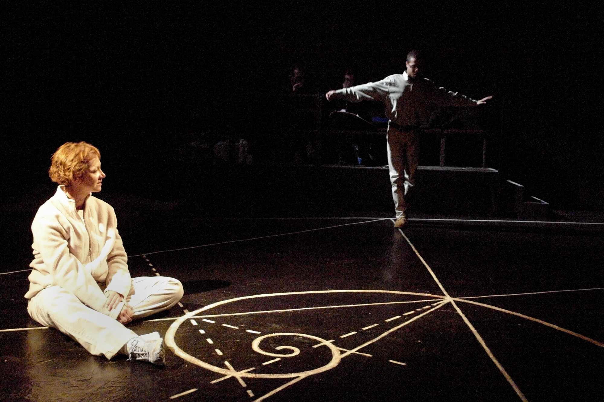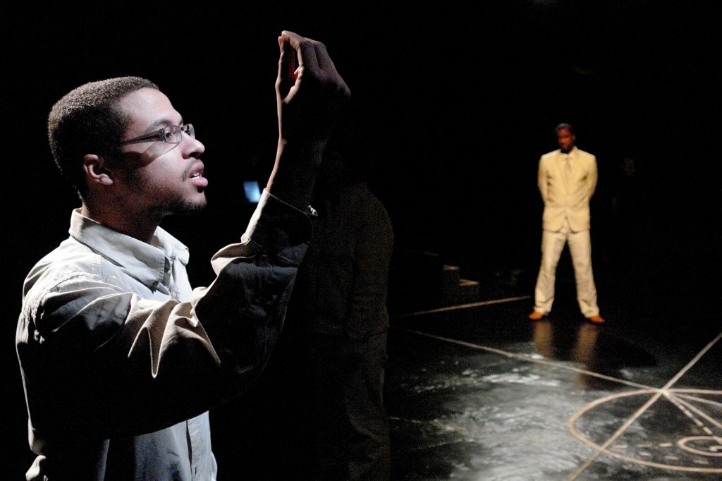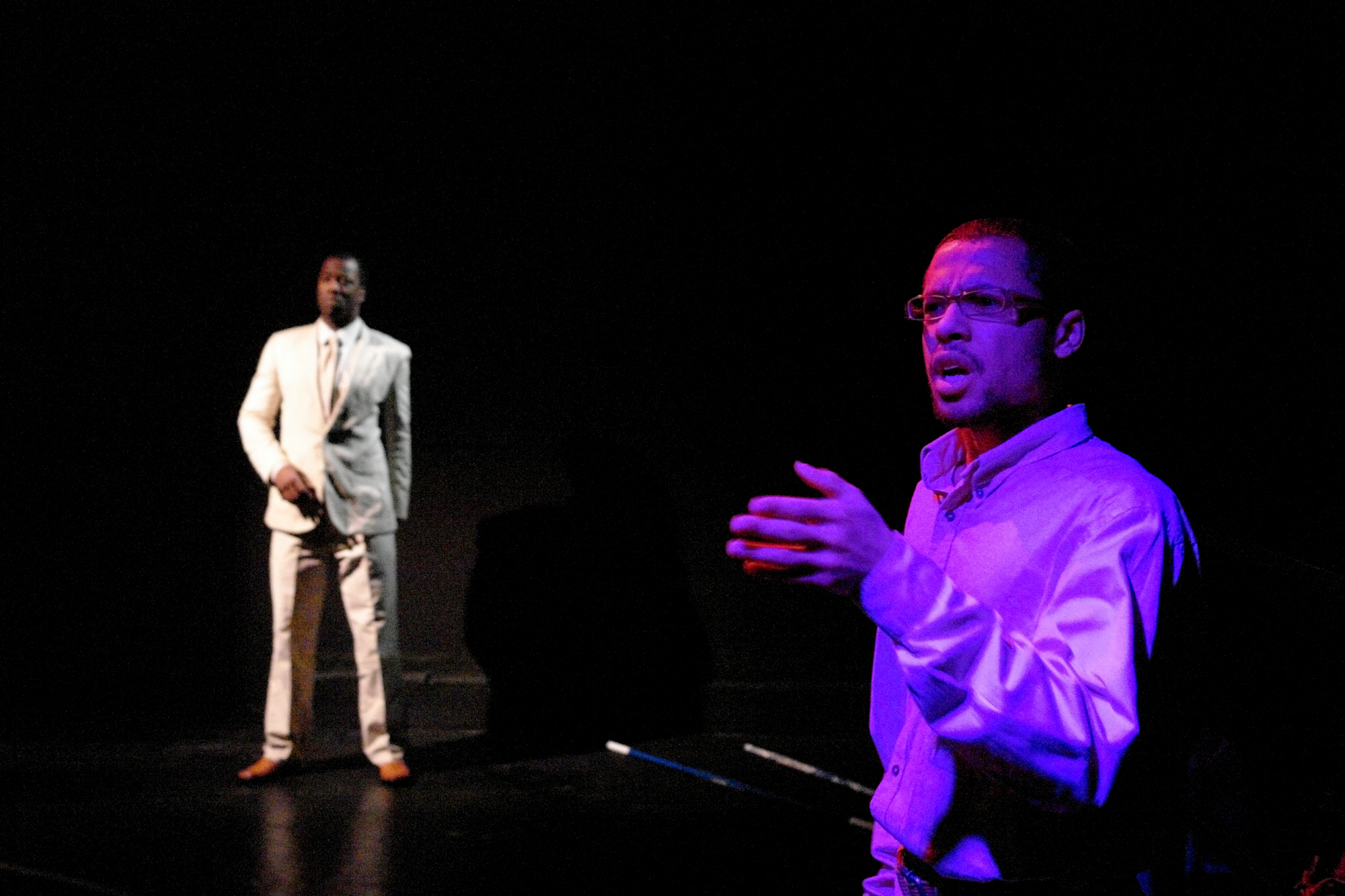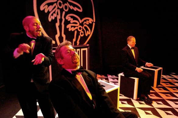 There are numerous settings in the play, and so I set up pools of light for the three actors to move through, passing into darkness as they moved to the next one, which signified a different location.
