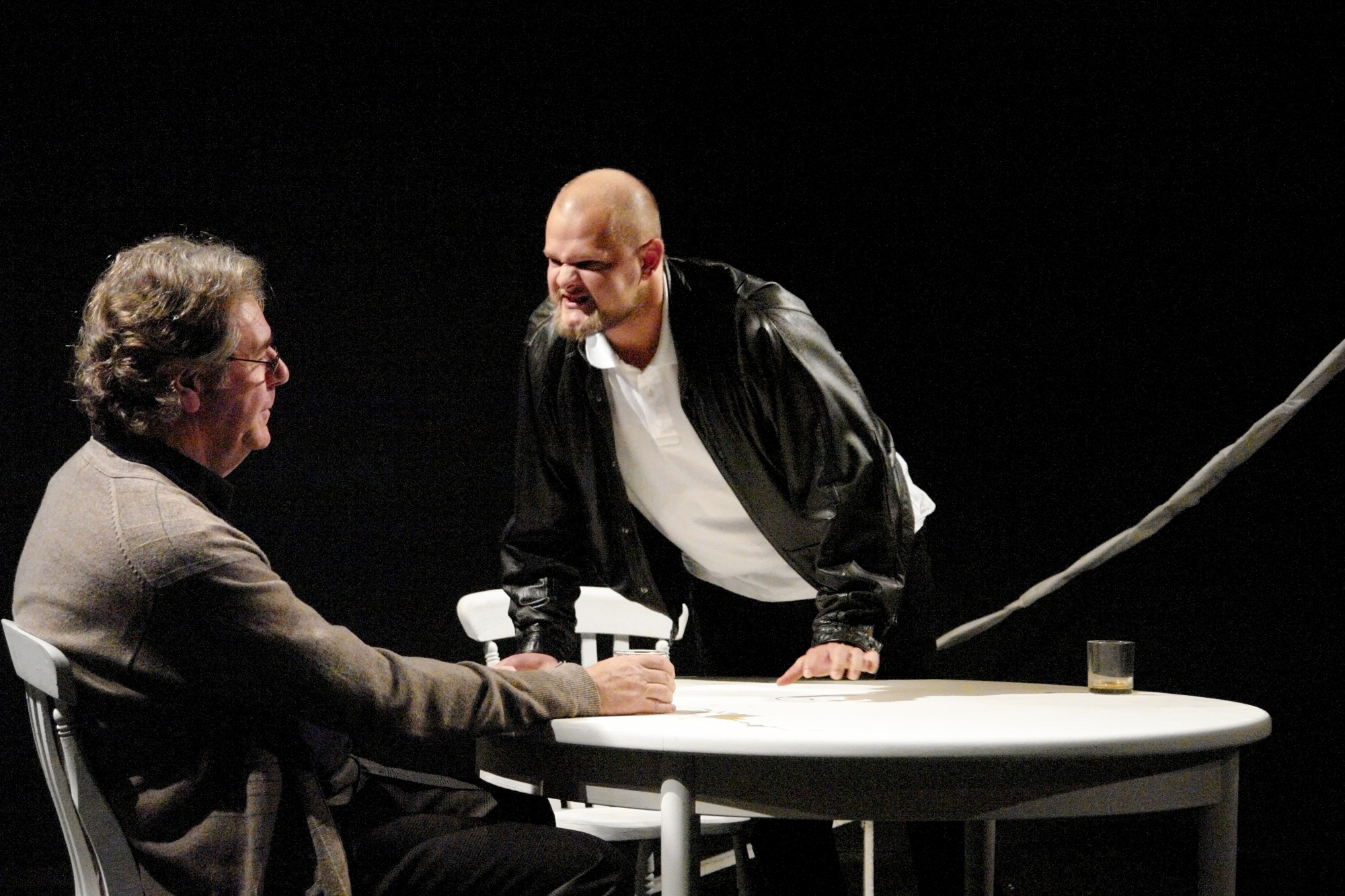 I’m a great fan of Caryl Churchill’s work, so when I got the opportunity to direct ‘A Number’ in September I jumped at the chance. It’s about cloning; a father puts his infant son into care, and has his tissue cloned to produce a new son in his place. But the scientists clone – a number – of the boys, and years later the truth comes out. The original son isn’t happy – as you can see . . .