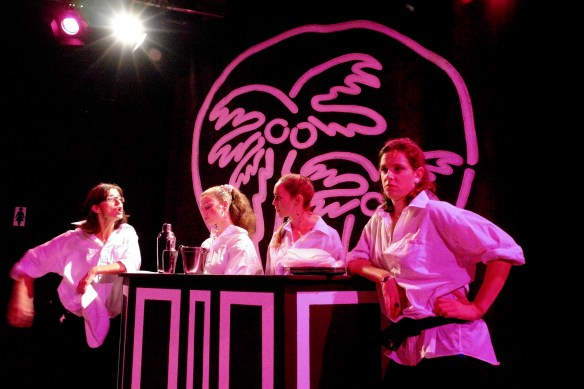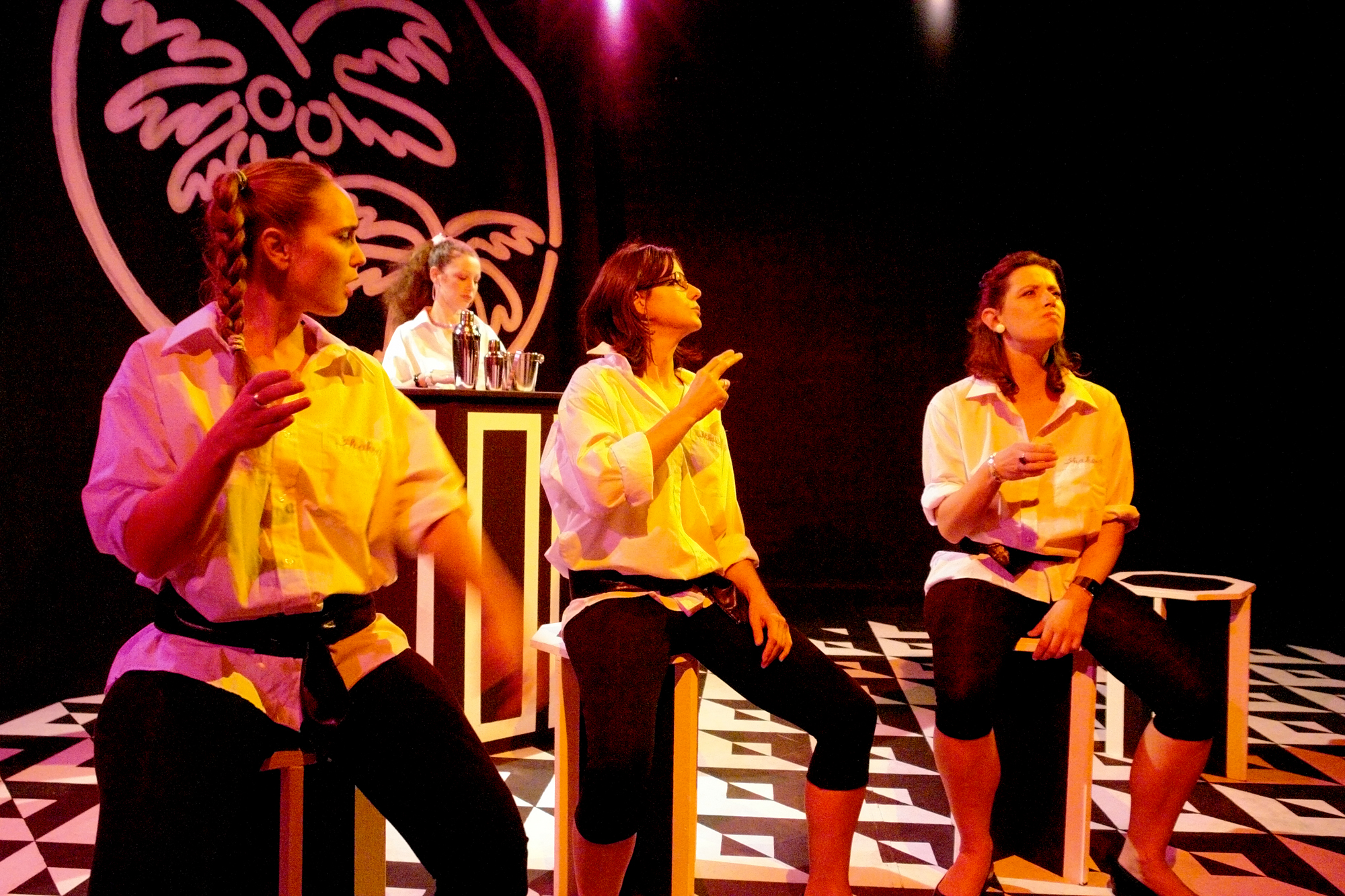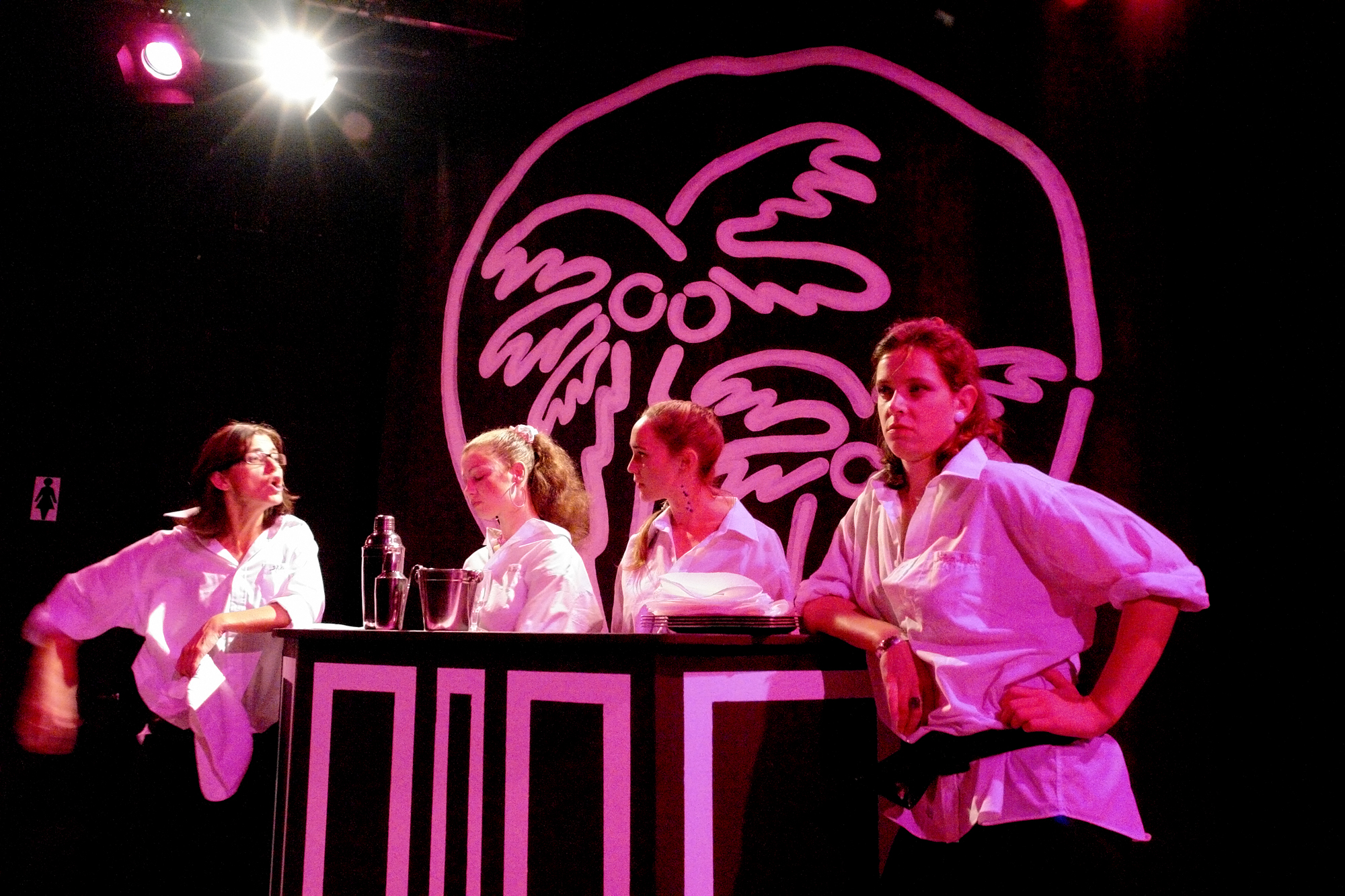 Mark Green directed ‘Bouncers, and Louise Gregory directed ‘Shakers’. Louise’s play is set in a cocktail lounge, with four waitresses mirroring the four bouncers in Mark’s production.