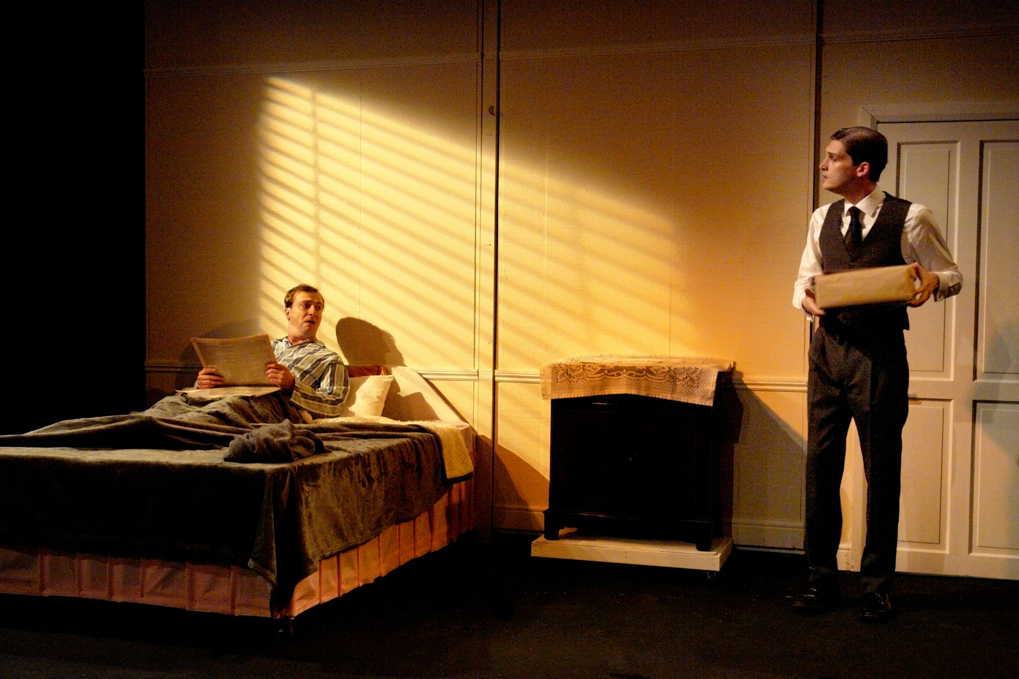 ‘The Servant’ worked brilliantly as a film, but Robin Maugham’s play version could be a director’s nightmare. The action takes place in the London house that friends have found for a wealthy expat returned from Africa, and jumps from the bedroom, to the lounge, then on to the kitchen. And back again, the different locations following one another very quickly.