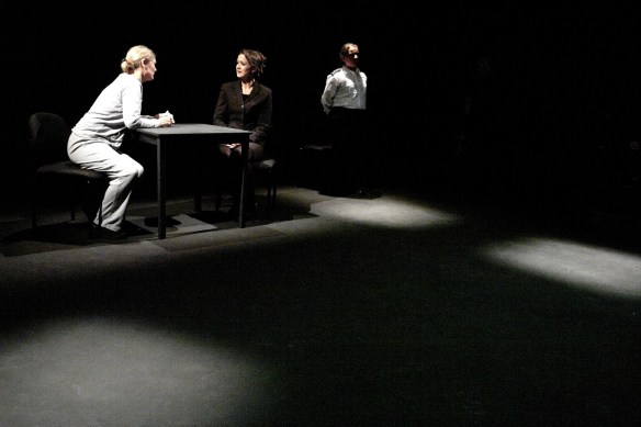 When we did Rona Munro’s play ‘Iron’ as NVT’s November offering, Jerry Lyne’s production had a minimum of props as a set. I created the inside of the prison almost solely with light – a pool of light on Fay and her daughter in their meeting room, and a series of harsh downlights suggesting the lighting in the corridors as the guards paced to and fro.