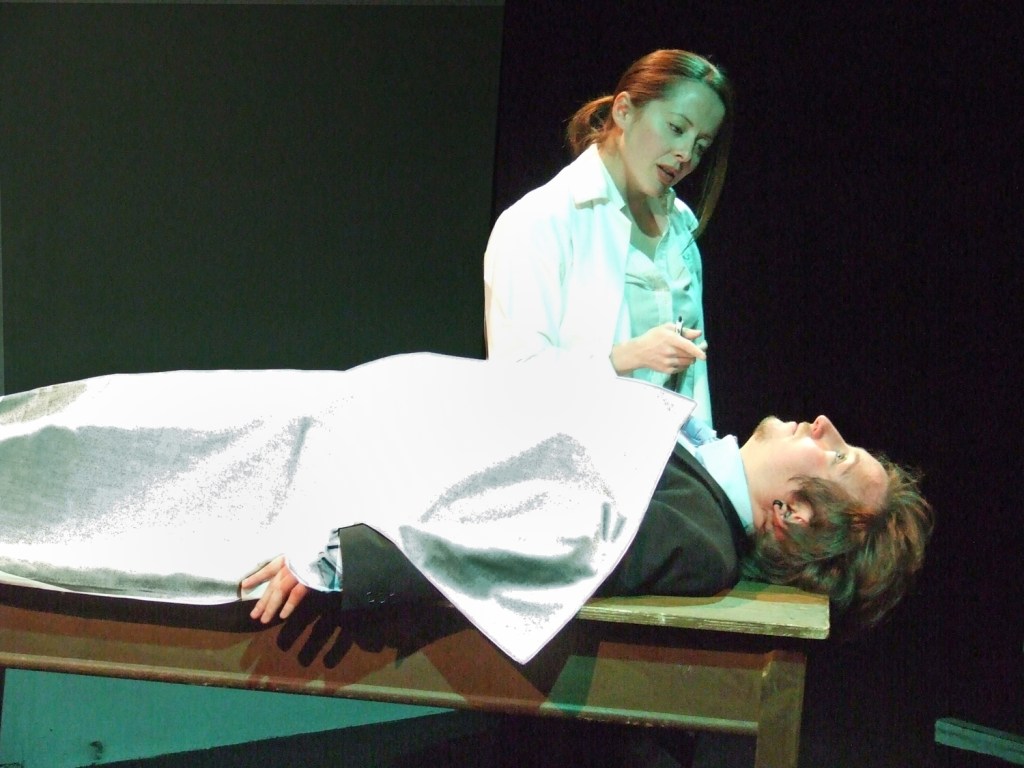 Yep – being dead is a pretty good way to practice ‘How To Disappear Completely’, our March production, directed by Ian Black. Fin Kennedy’s play is about a man who’s had enough of his corporate life and tries to escape. Part of the action takes place in a cemetery – an interesting challenge!
