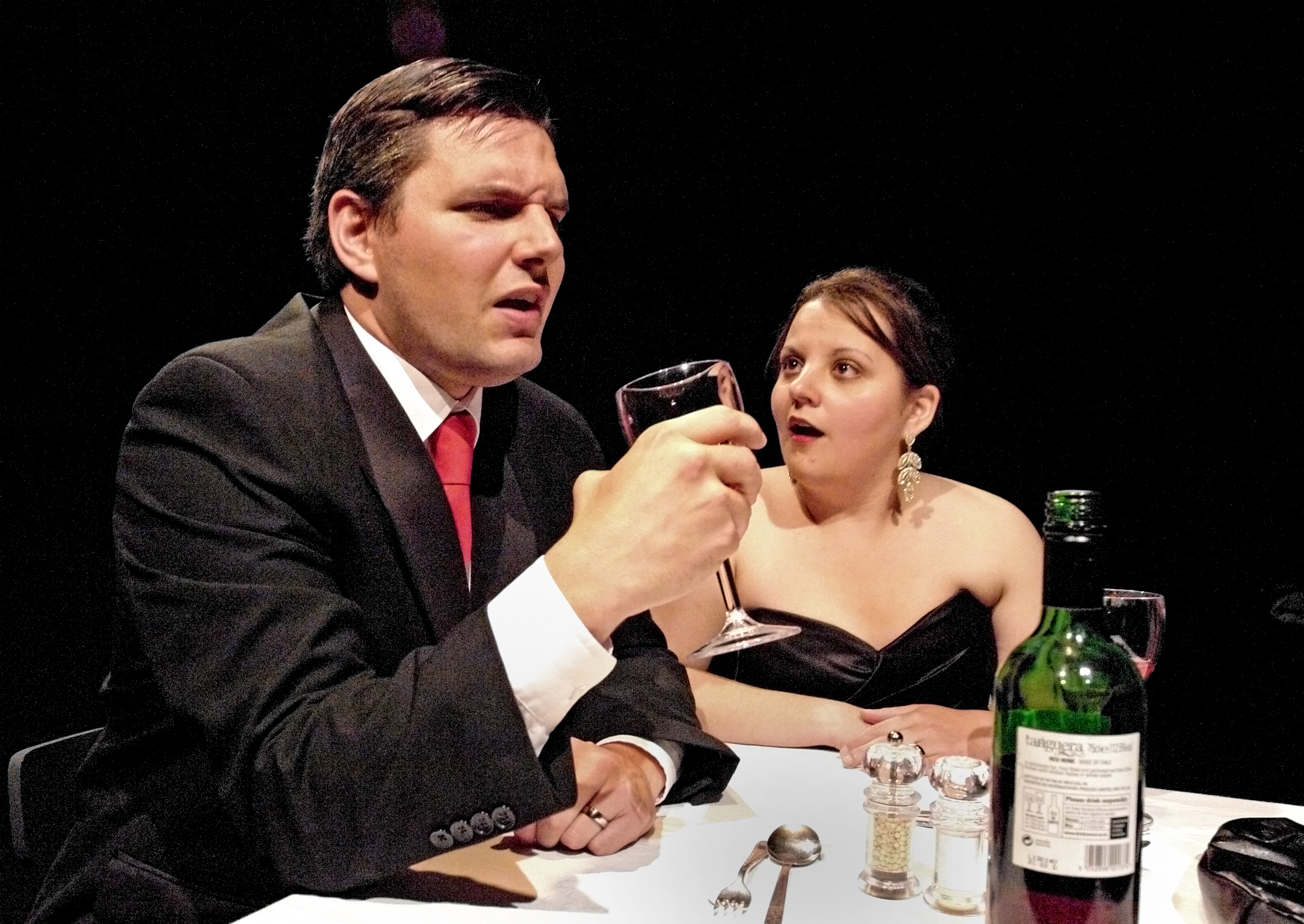 June’s NVT offering was a double bill of two Pinter plays – ‘Celebration’ and ‘The Lover’ The first features a very boozy dinner in a restaurant, that doesn’t turn out quite how the diners at the next table expected . . .