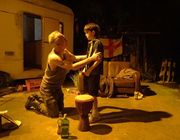 Rooster surrounds himself with rather ‘lost’ young people, supplying them with drugs and booze, but he has an eight-year-old son, Marky, who visits the encampment with his mother in the play’s closing scenes.