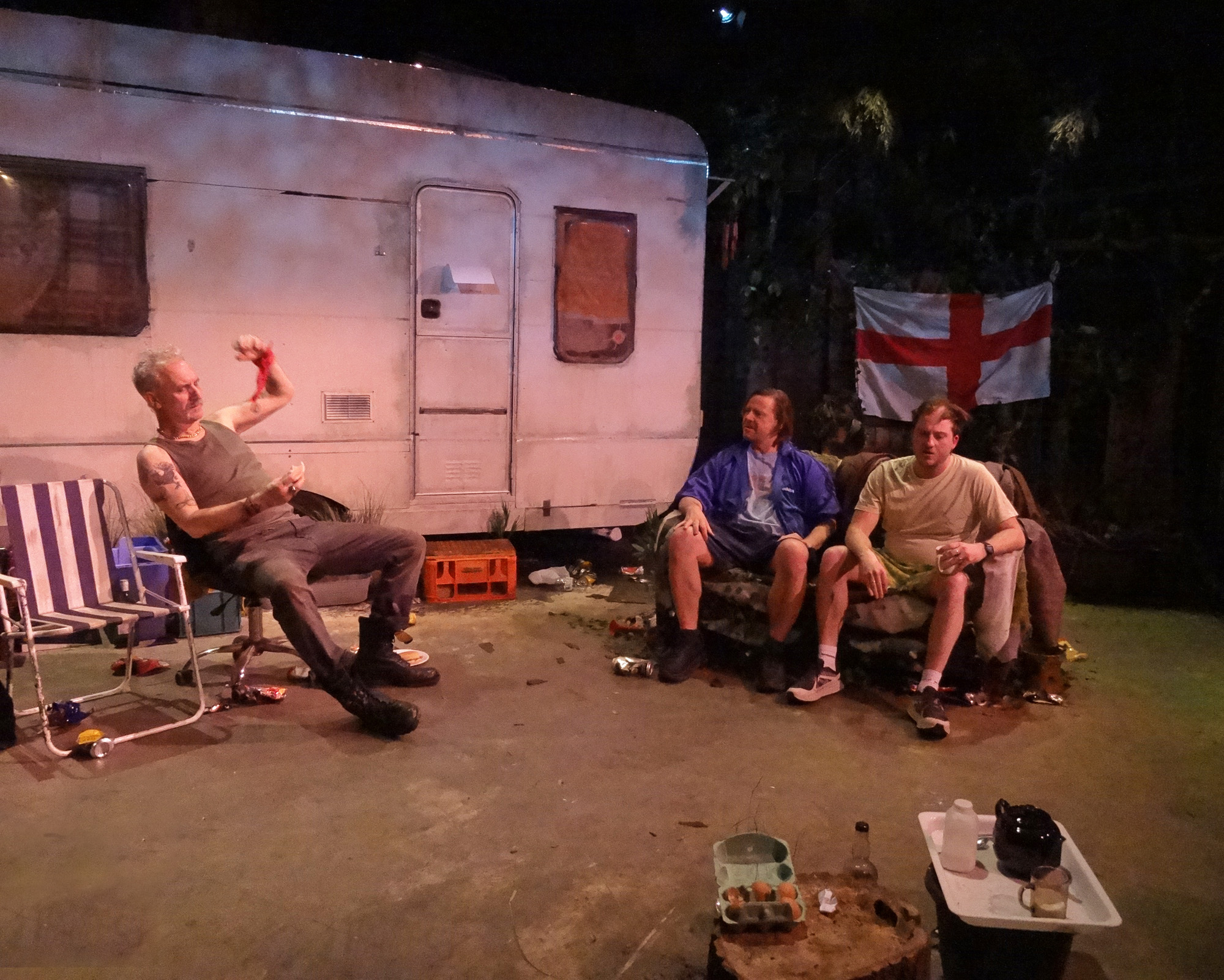 Rooster surrounds himself with rather ‘lost’ young people, supplying them with drugs and booze, but he has an eight-year-old son, Marky, who visits the encampment with his mother in the play’s closing scenes.