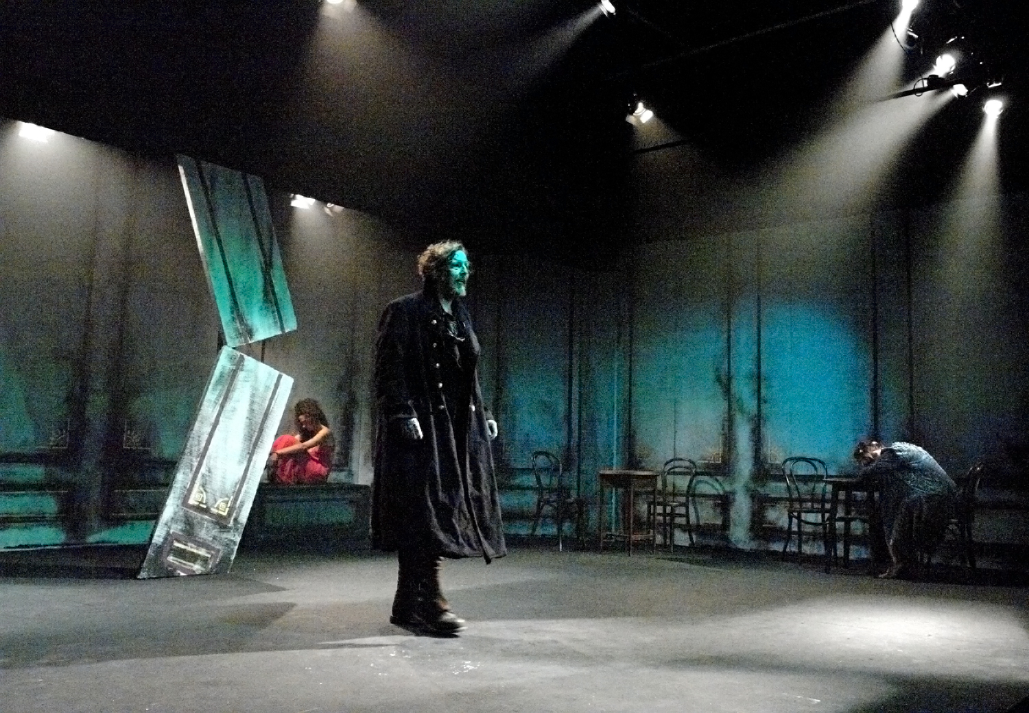 The director wanted to give the impression of a shattered building, with shafts of light coming through holes in the damaged roof. I created pools of light that the actors passed into, and through, before moving back into shadow.