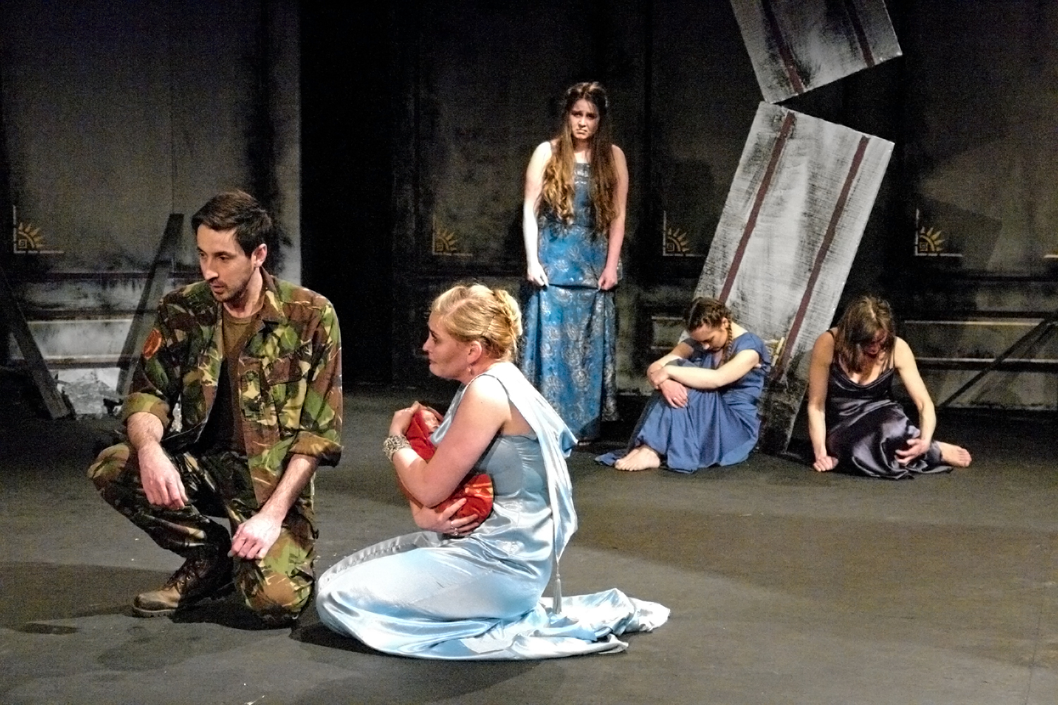 Hecuba, Queen of Troy, looks on in horror as her daughter Cassandra bursts into the gutted ballroom clutching a pair of petrol bombs. ‘The Trojan Women’ has been updated to the modern era in New Venture’s February production.