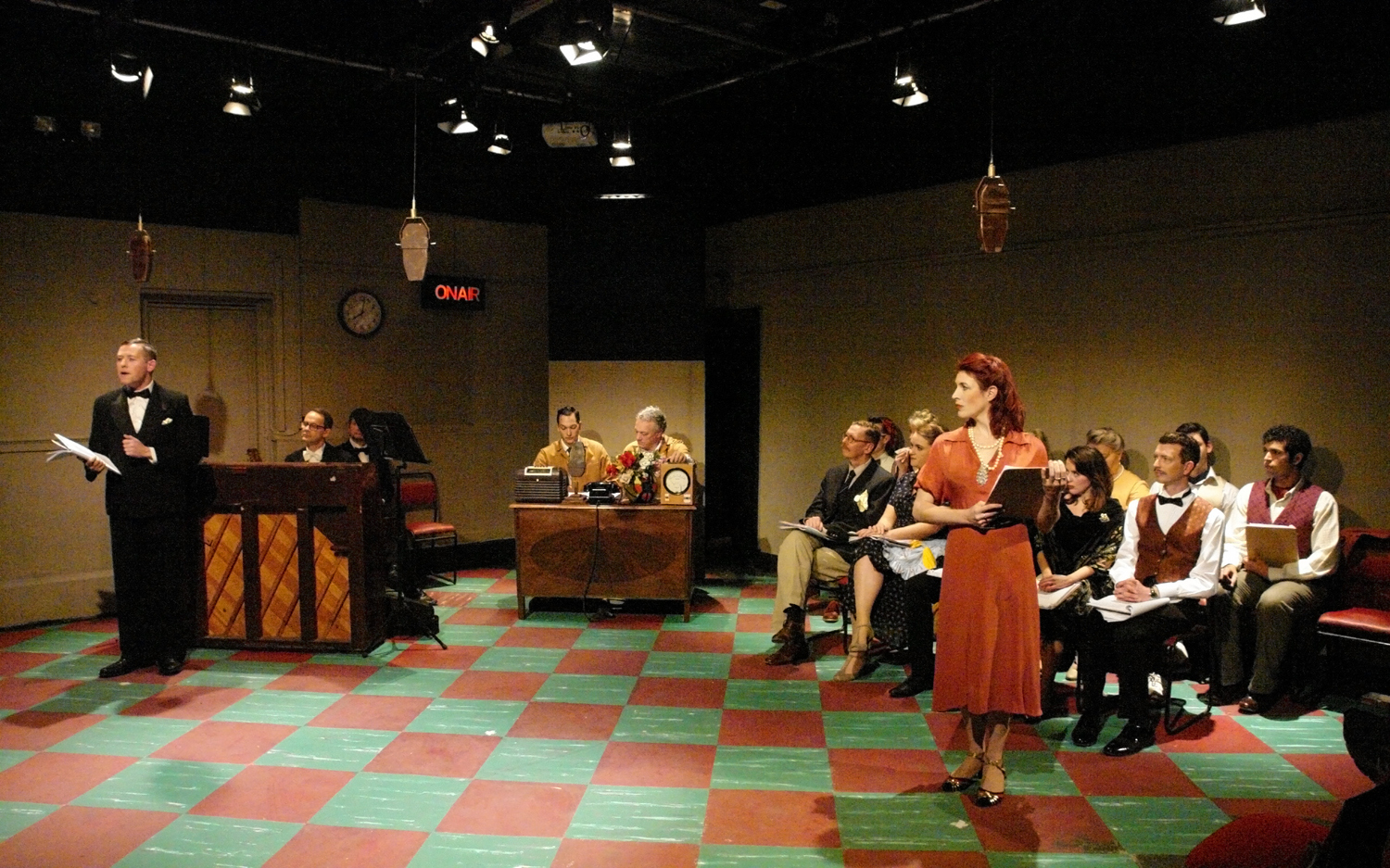 Dick Barton was a fifties radio hero on the BBC, and director Gerry McCrudden has recreated the studio setting as a large cast perform Dick’s adventures live on air.