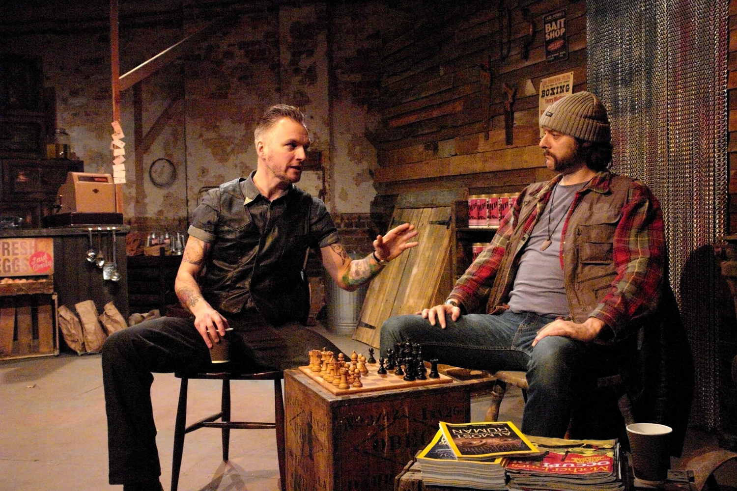 We’re well used to the concept of the ‘fourth wall’ in theatre. For ‘The Albatross 3rd & Main’, though, the fourth wall was largely taken up by a slatted window. All through the second act, sodium light from a street lamp outside came pouring into Gene’s hardware and tackle shop, situated on 3rd & Main streets of some sleepy New England town.