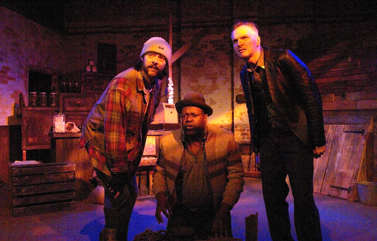 It’s a three-hander, with brilliant dialogue (reminiscent of David Mamet or Quentin Tarantino), written and directed by Simon David Eden. The guys are being watched – but by whom? – and keep peering through the window at the street outside. It was very satisfying to design this ‘noir’ style of lighting to support the staging..