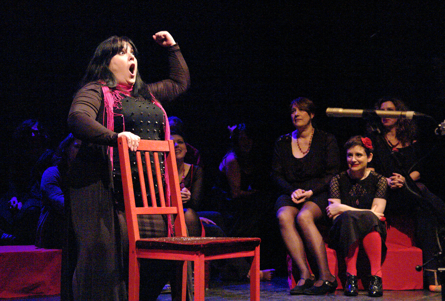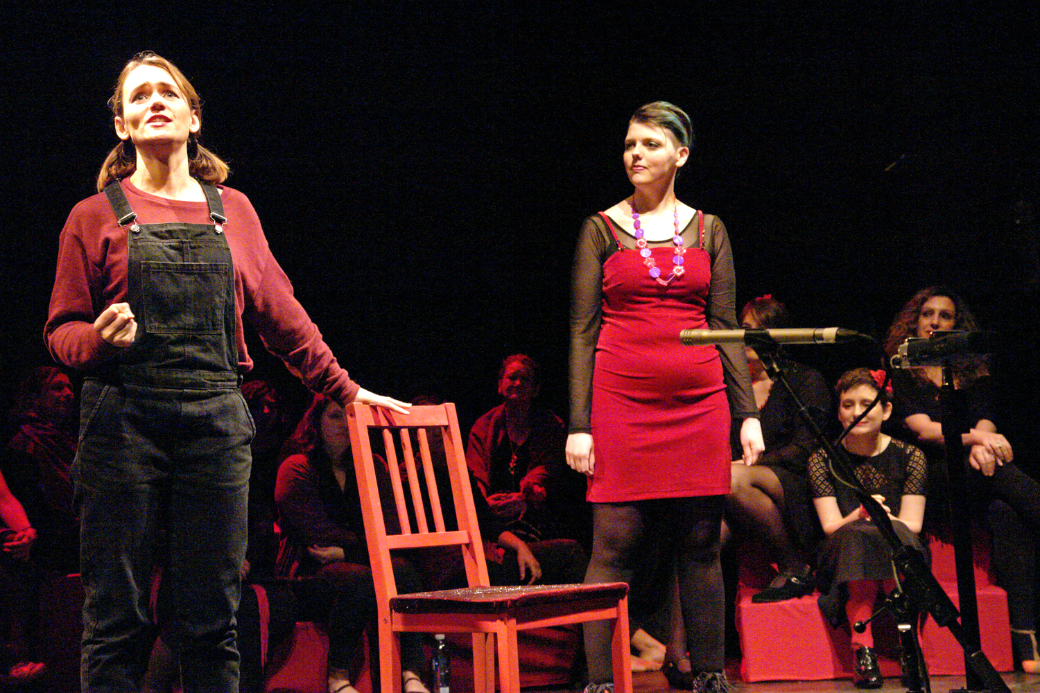 “My revolution starts here! …” A performance of ‘The Vagina Monologues’ at The Dome Studio on International Women’s Day. Eve Ensler’s famous work celebrates the experience of women – political and economic, but also sexual, as Sascha Cooper demonstrates the ‘Diva orgasm’ …