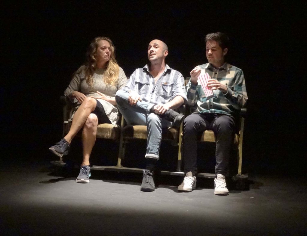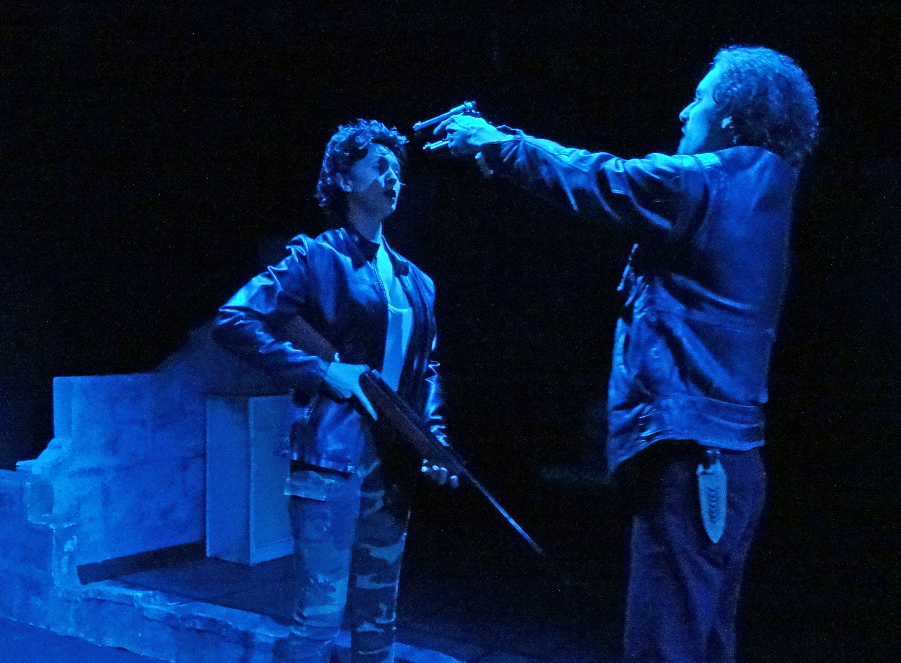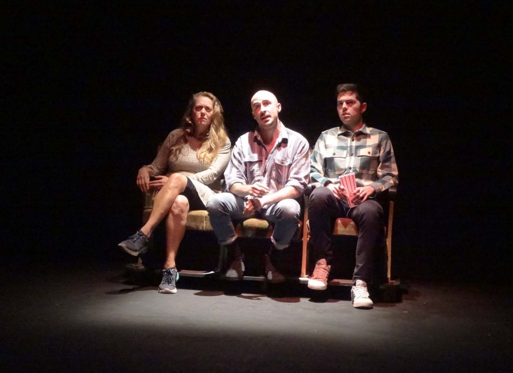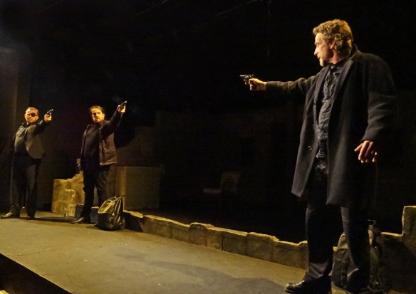 The three characters seem to be discussing the writing of a screenplay based on school shootings in America. At the conclusion, the dialogue gets very dark indeed, and the lighting had to follow …