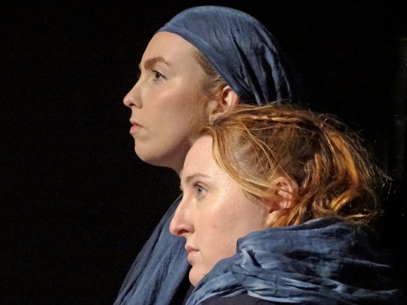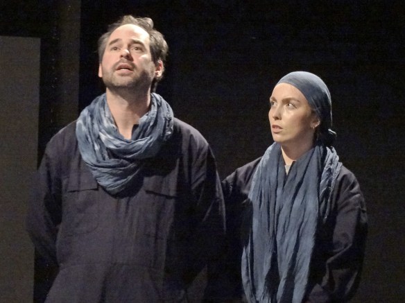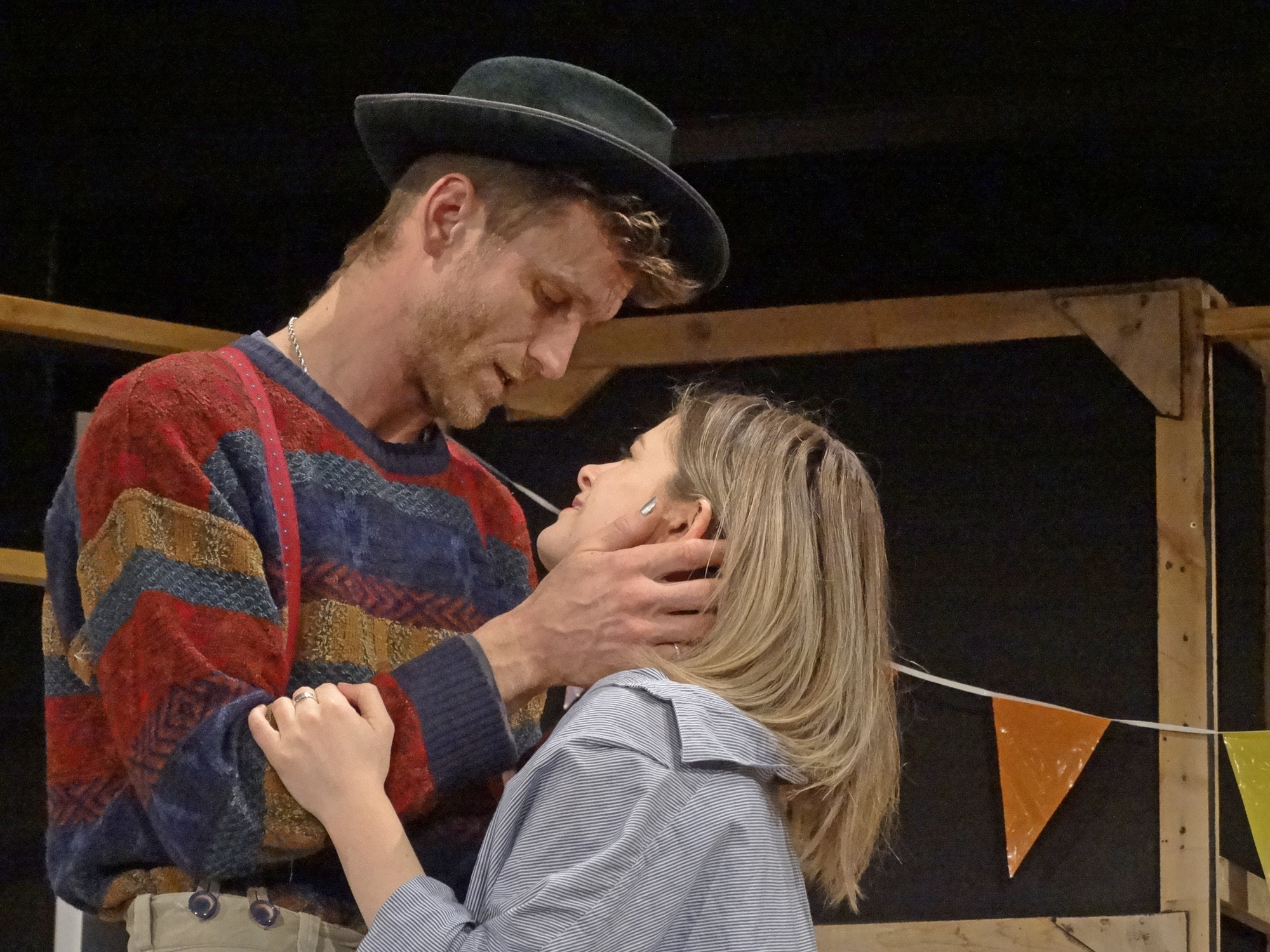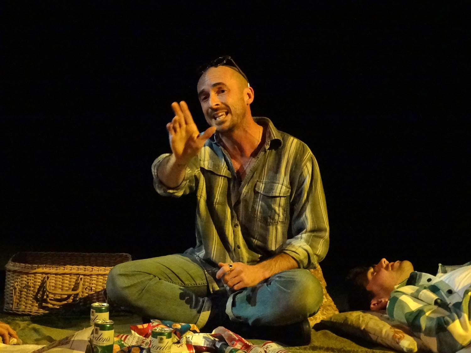 … but for Martin Crimp’s linked pair of plays we shrank the acting – and lighting – space down to a couple of central areas. Slanting evening sunlight for a picnic in an outdoor location in ‘Face To The Wall’