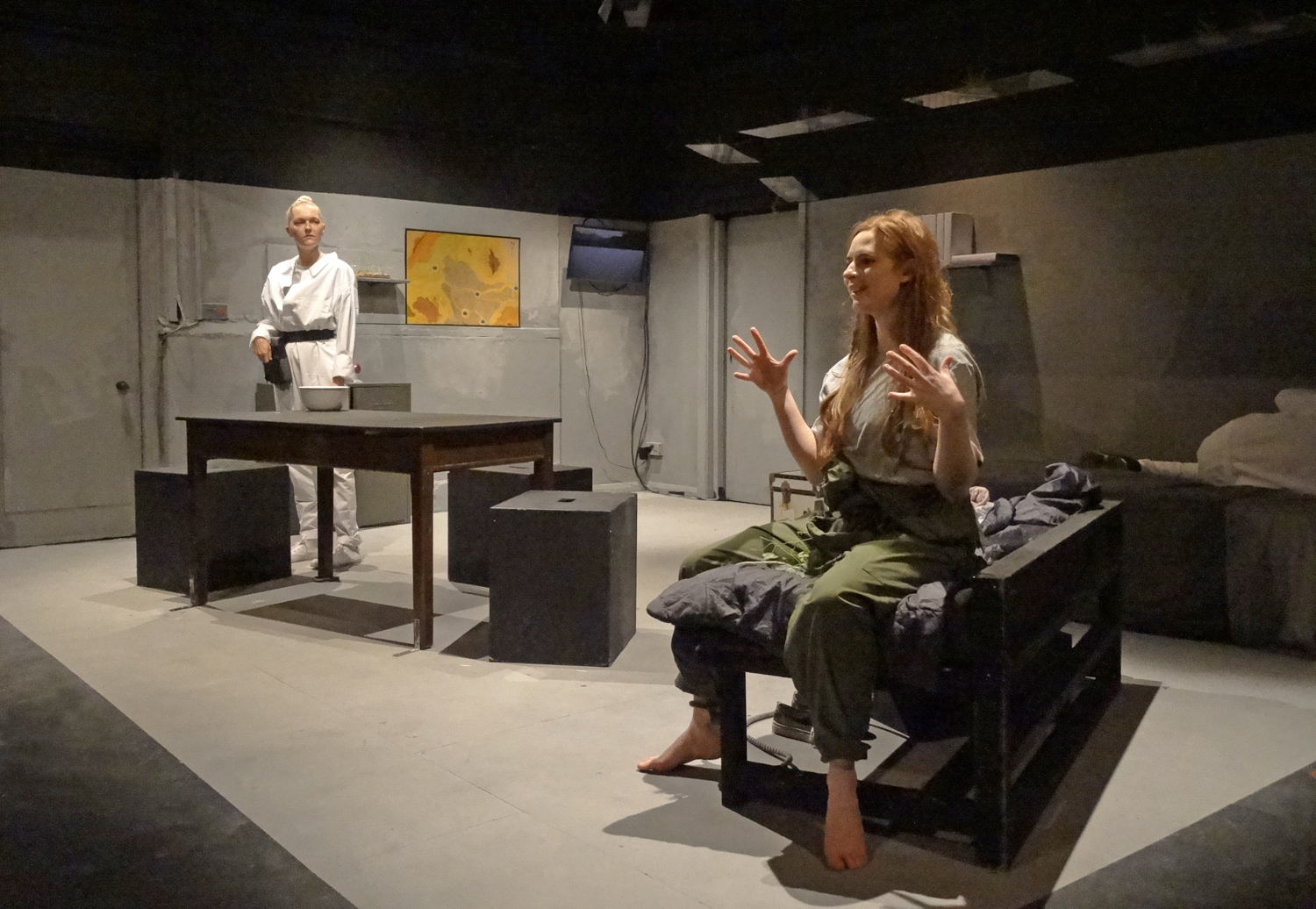 Writer / Director Sam Chittenden paired a brand-new dystopian drama with a reworking of Shakespeare’s difficult ‘comedy’ to explore sexual politics in two radically different places and times. We used many of the same set elements in both plays, with the beds of ‘Unsanctioned’ becoming prison bars and gates in ‘Measure 2 Measure’.