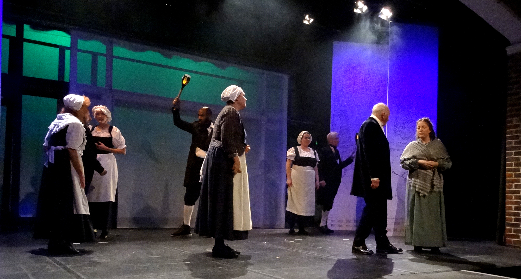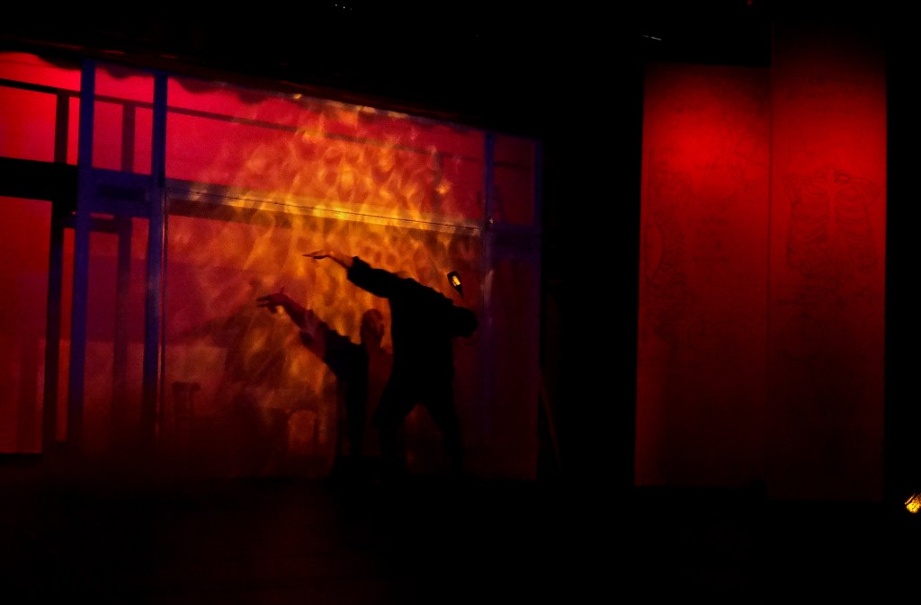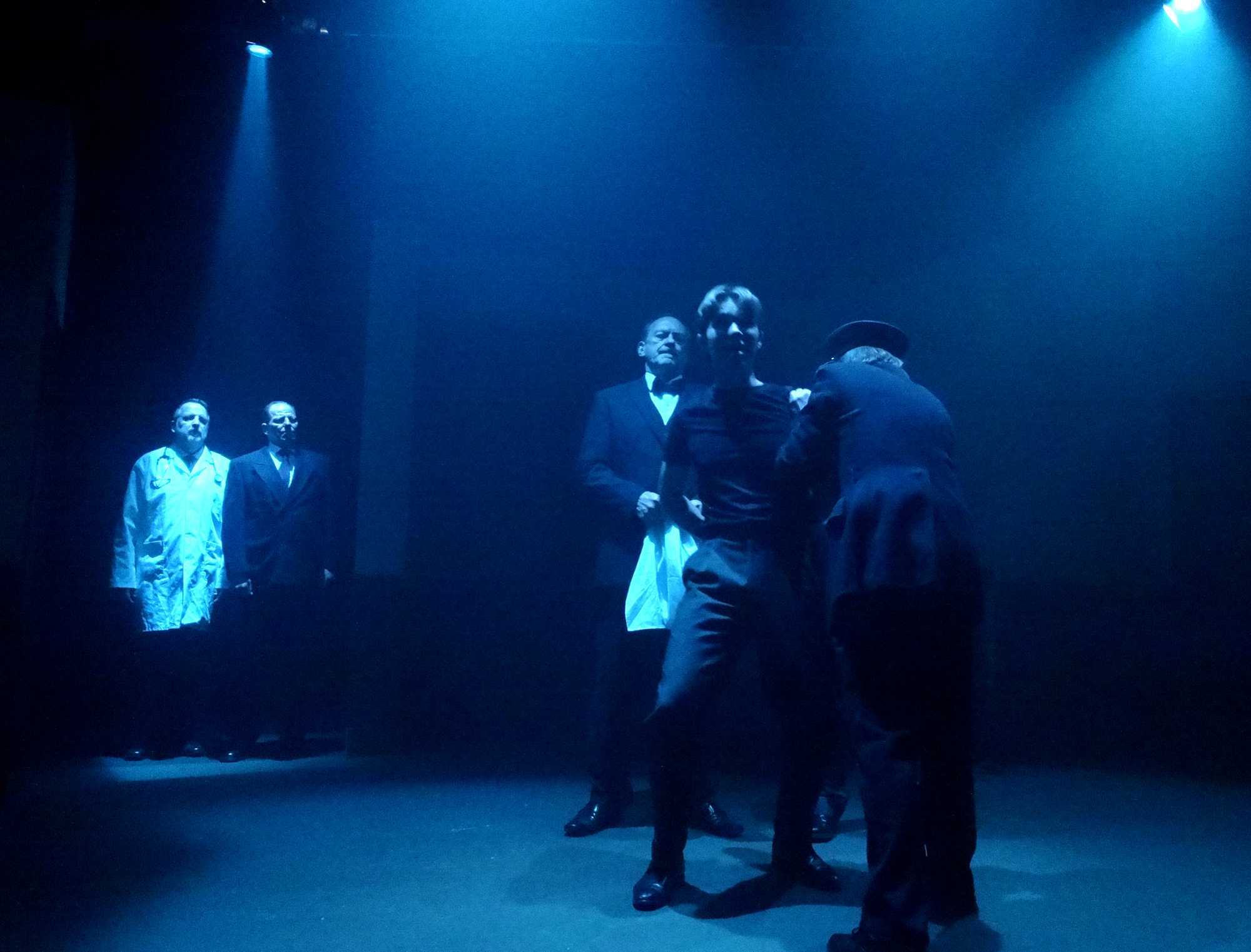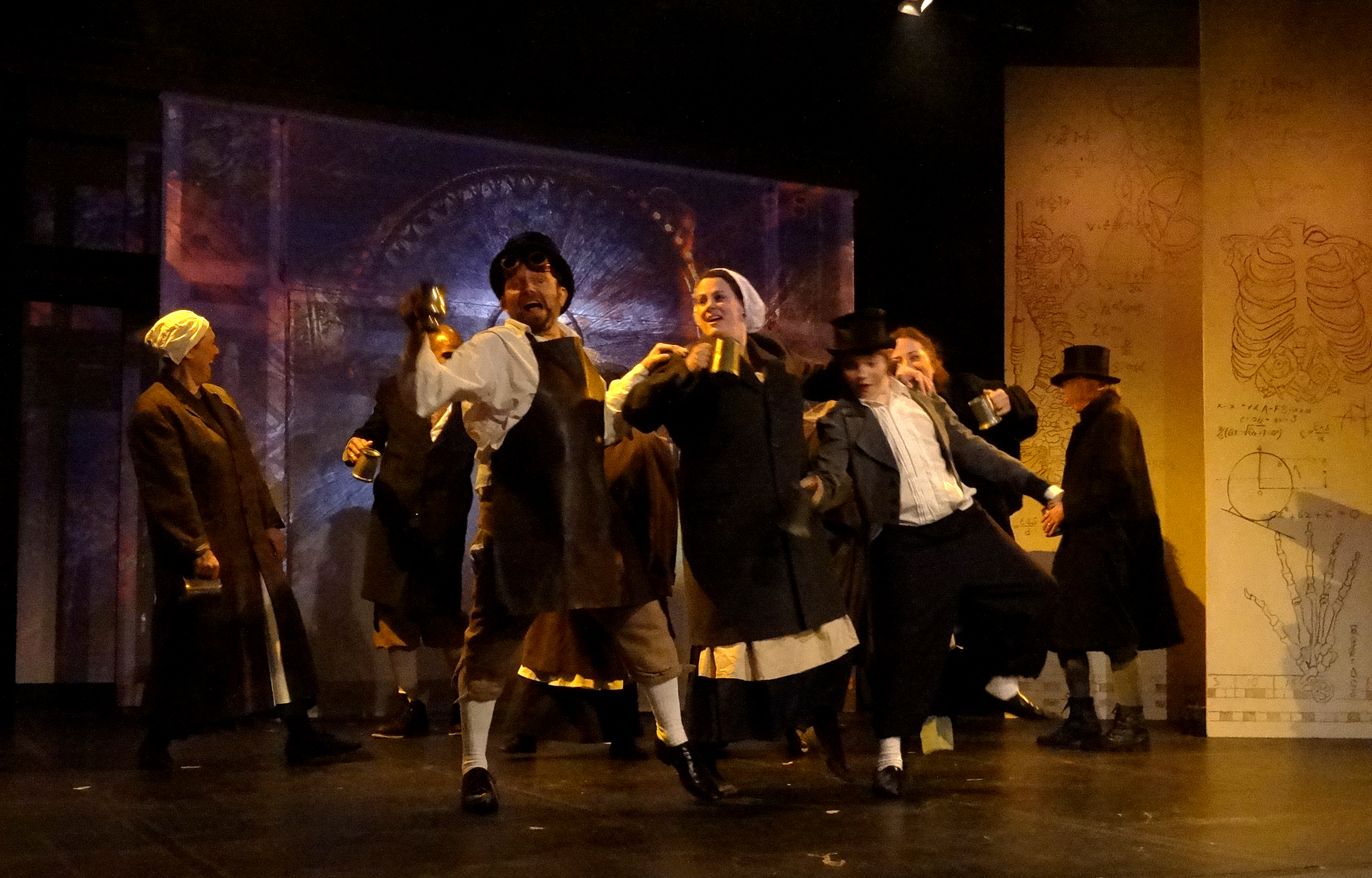 Great to be working again with Director Diane Robinson and the very friendly team at The Barn Theatre – I’ve lit ‘Brief Encounter’ for Diane in this space back in 2017, as well as Dan Dryer’s production of ‘Thérèse Raquin’ in 2018. Dan appeared in ‘Frankenstein’ as several characters: here he’s leading the Ingolstadt revellers in one of the ensemble movement sections.