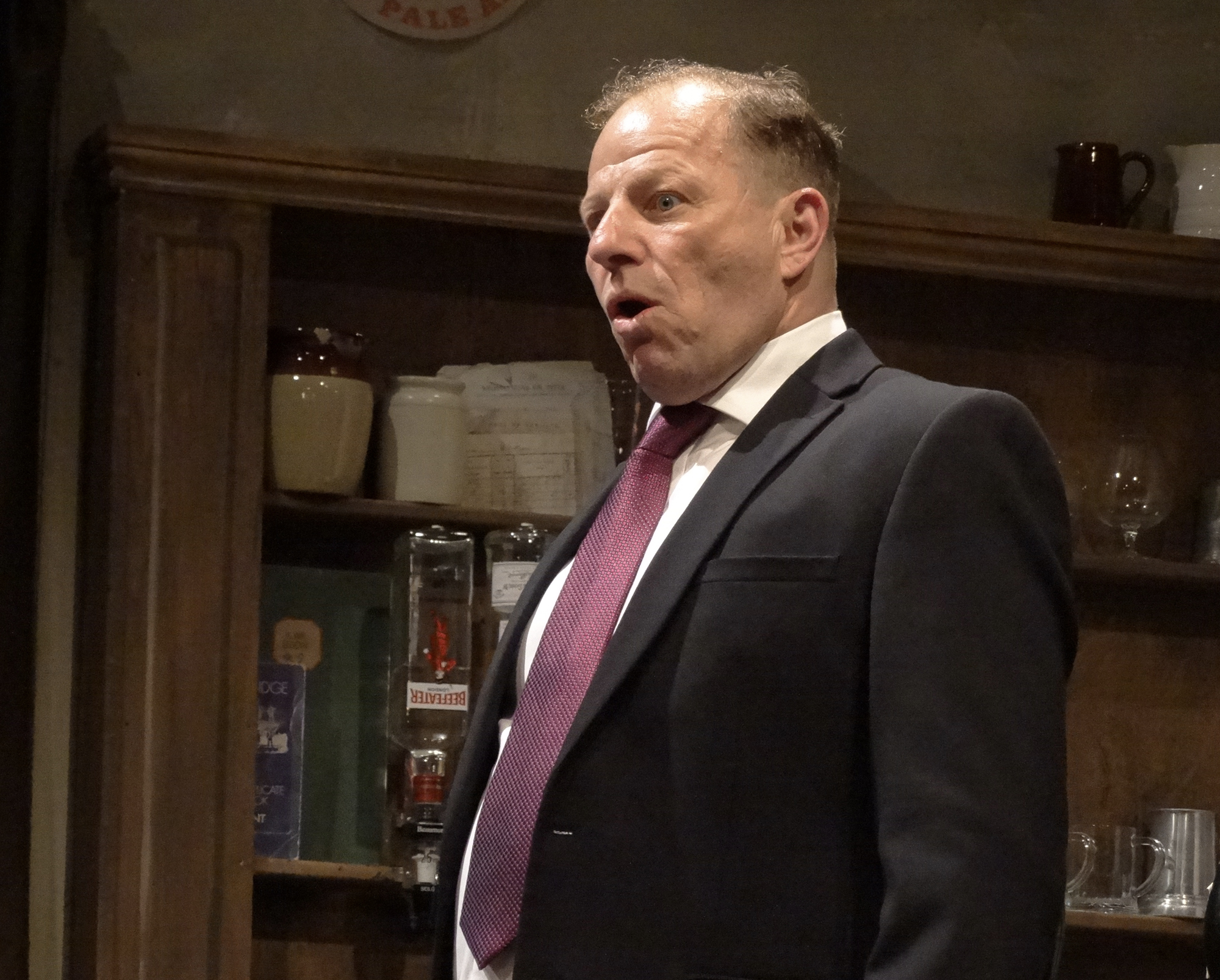 We did Martin McDonagh’s ‘Hangmen’ as New Venture’s April production. A challenging one to light, as Director Pat Boxall’s design concept extended from Harry’s Oldham pub to a café in the High Street, and the prison where, two years earlier, James Hennessy had been hanged for murder.