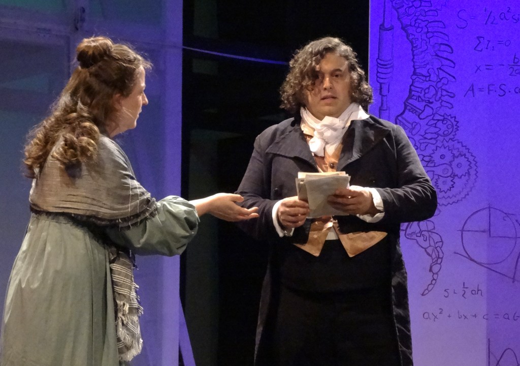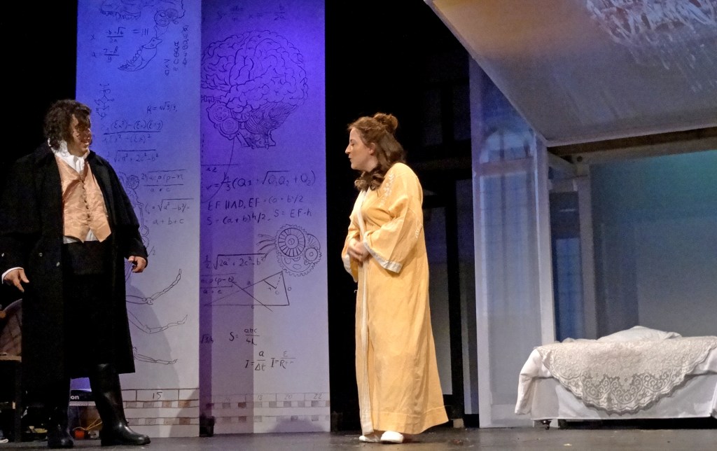 Judith designed and created the projections that did so much to set the location of each scene. She also produced the illustrated side panels – suggestive of pages from Frankenstein’s research journal.