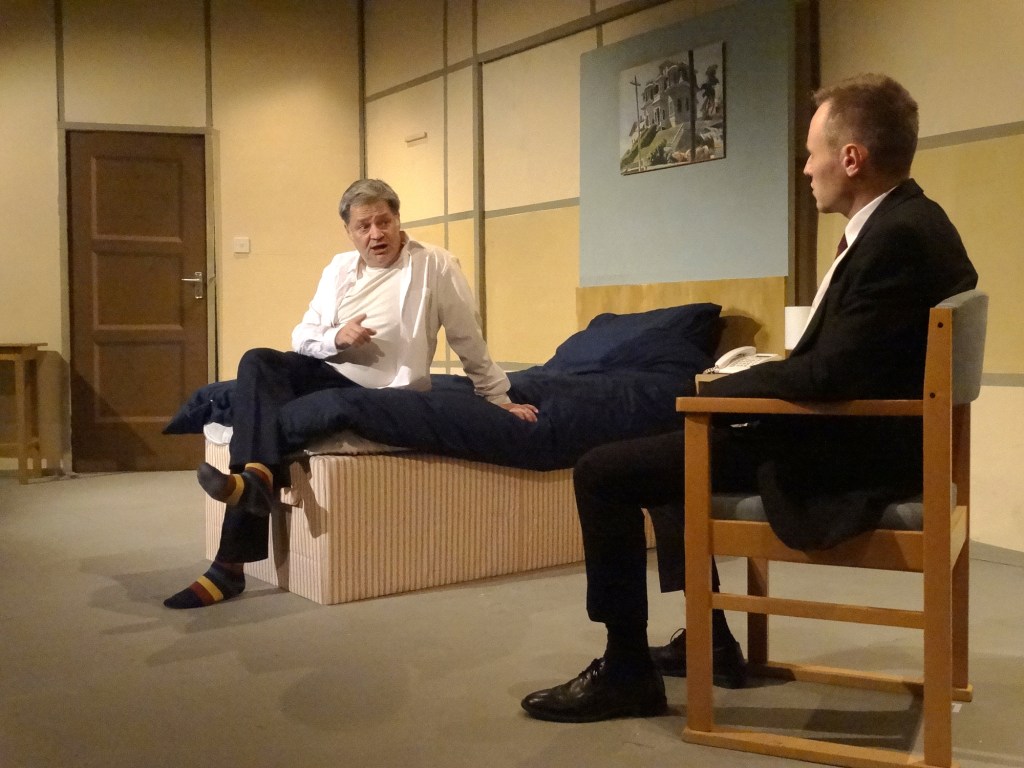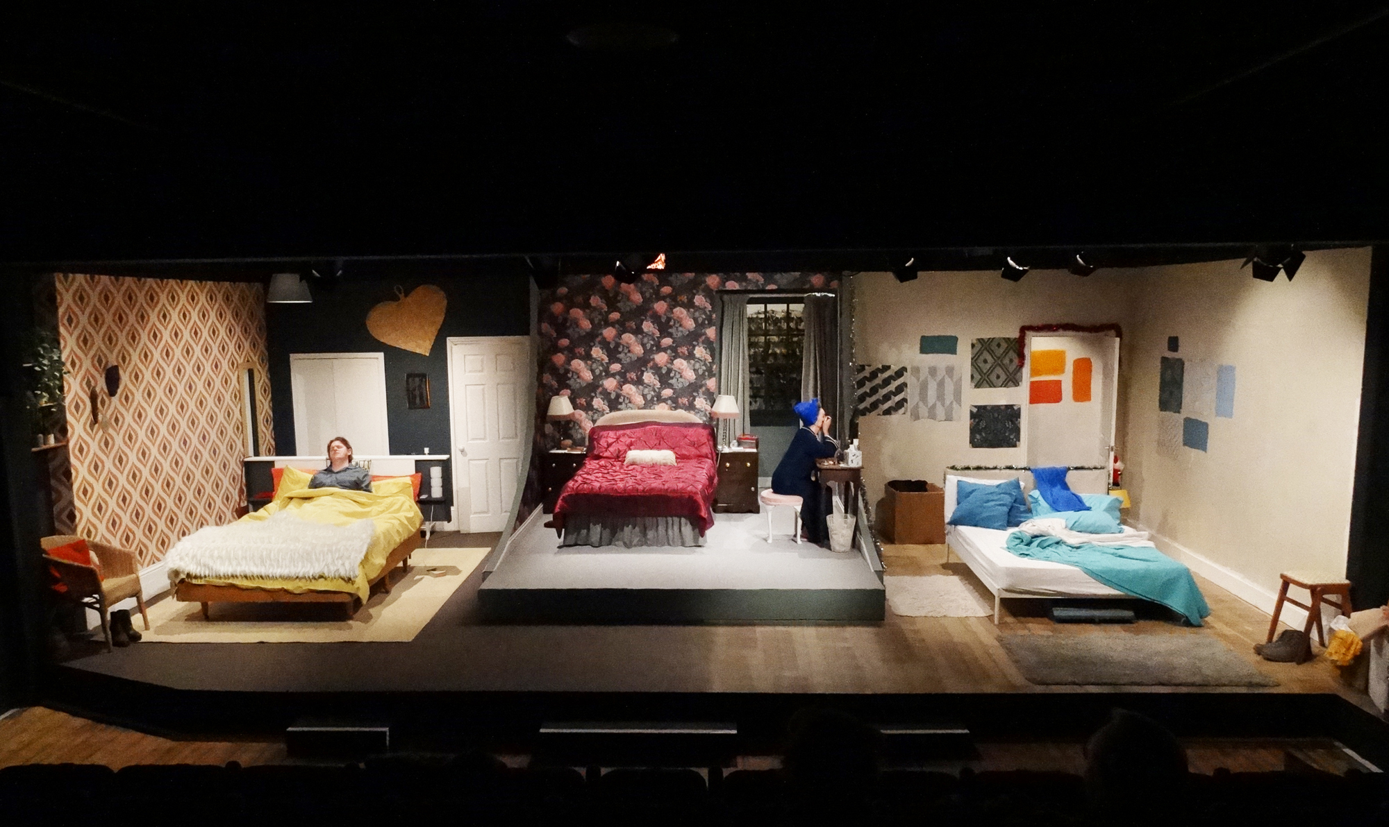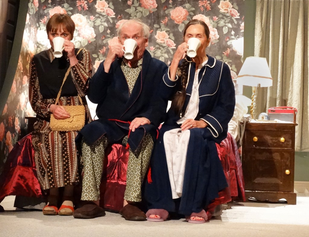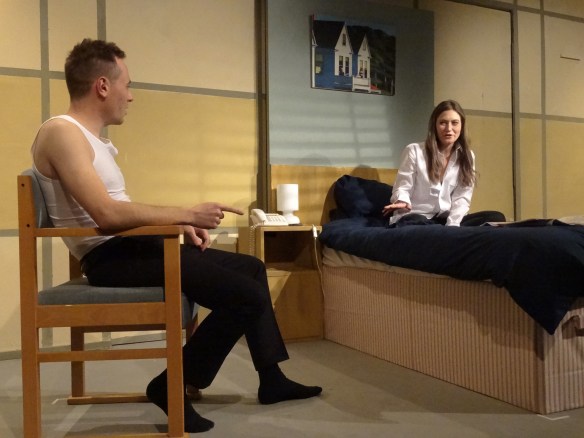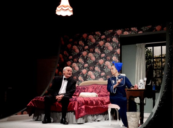 A Christmas show for New Venture’s December production. As you can see – it’s full of seasonal comfort and joy … ‘Bedroom Farce’ is exactly what it says on the tin – Alan Aykbourn’s play features four couples, in the bedrooms of three separate houses. That’s Malcom and Kate above (in Christmas hats) in their bedroom with Trevor and Susannah (whose marriage is a bit strained, as you can see).