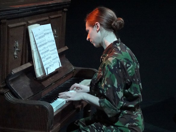 Amanda deals with her situation by not talking – she plays piano instead. The set included a window behind the instrument, to illuminate the pianist, and also to provide a floor shadow during the blackouts between scenes.
