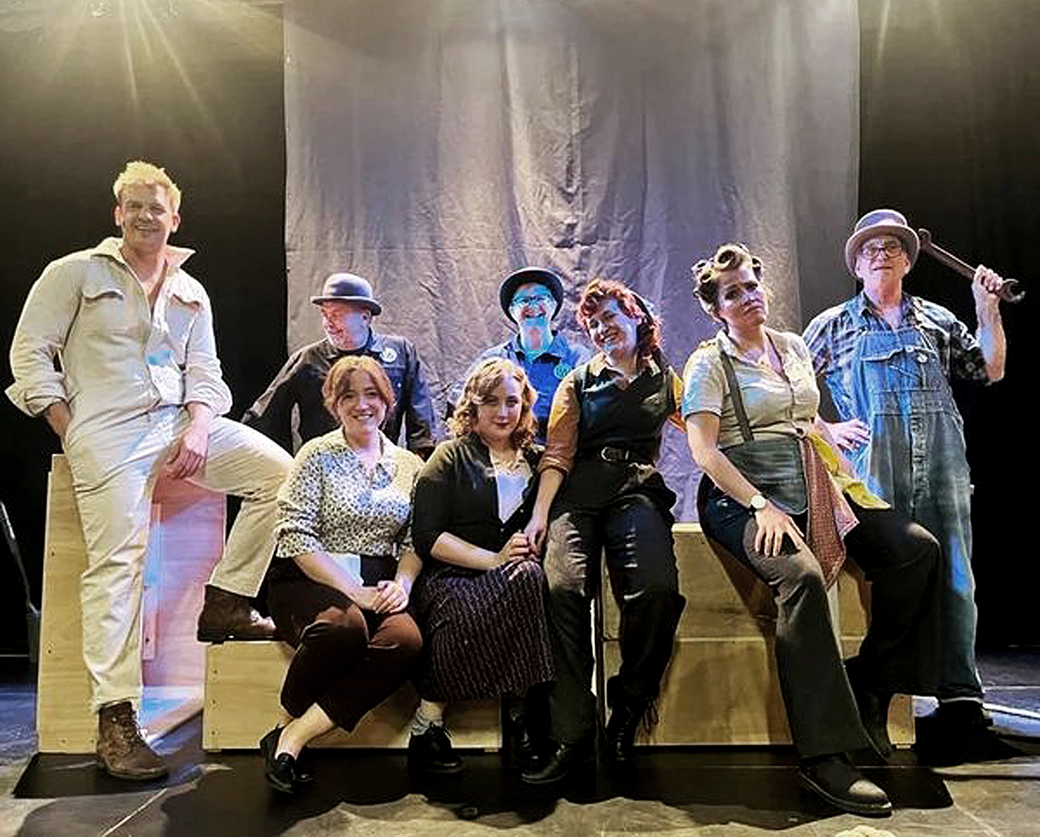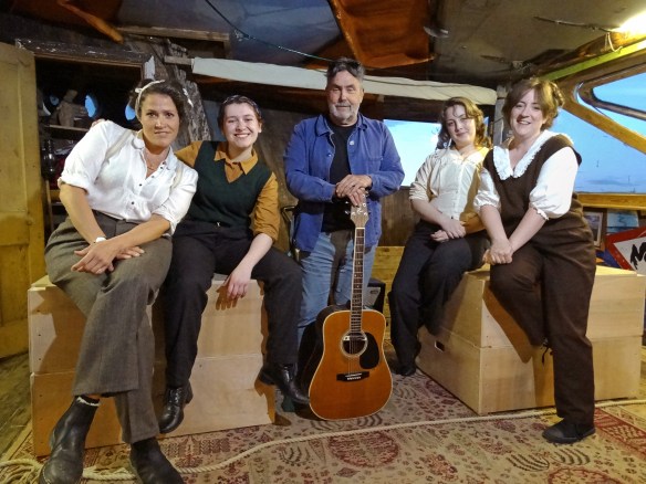 A bigger team at Ropetackle in October – with more musicians and an extra actor/singer, Aaron, who played a shot-down German airman that the women encounter. That’s him on the left of the group, alongside the show’s actors and musicians.