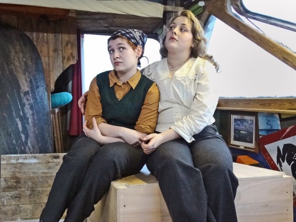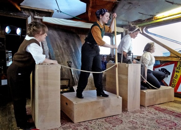 The show celebrates the work of the women who were drafted onto the waterways during World War 2, piloting narrowboats carrying cargoes of coal or steel on the British canals. The system was designated ‘Inland Waterways’, so the women were issued badges reading ‘ I W ‘. They were quickly referred to as ‘Idle Women’ by the ‘men who’d never hauled coal’, as one of the production’s songs tells it.
