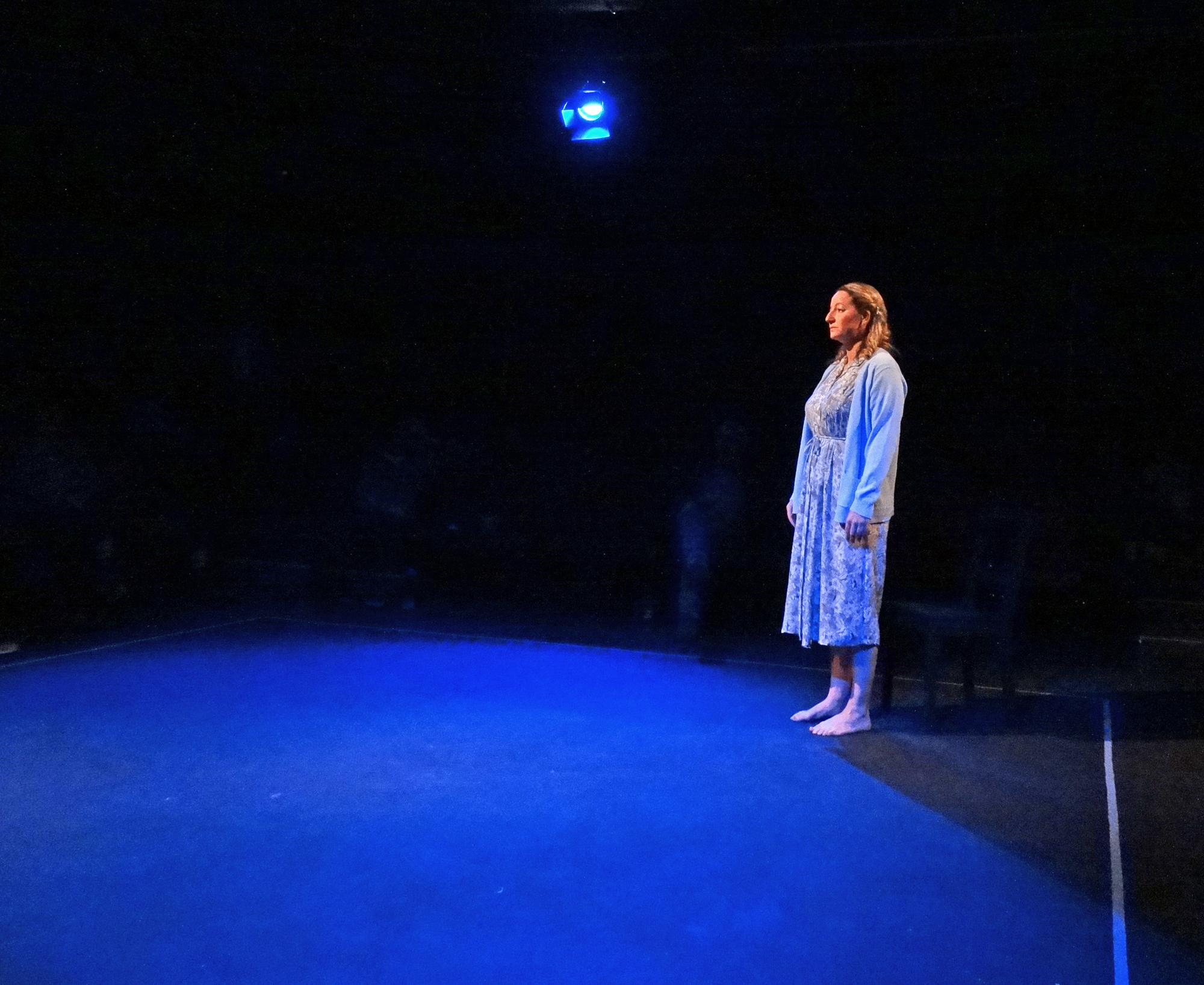 Director Emmie Spencer staged ‘You’ in the round, with audience on all four sides of NVT’s Studio, so my lighting had to be quite tightly focused. I used a palette of blue and orange too, evoke changes in mood or different times in the narrative.