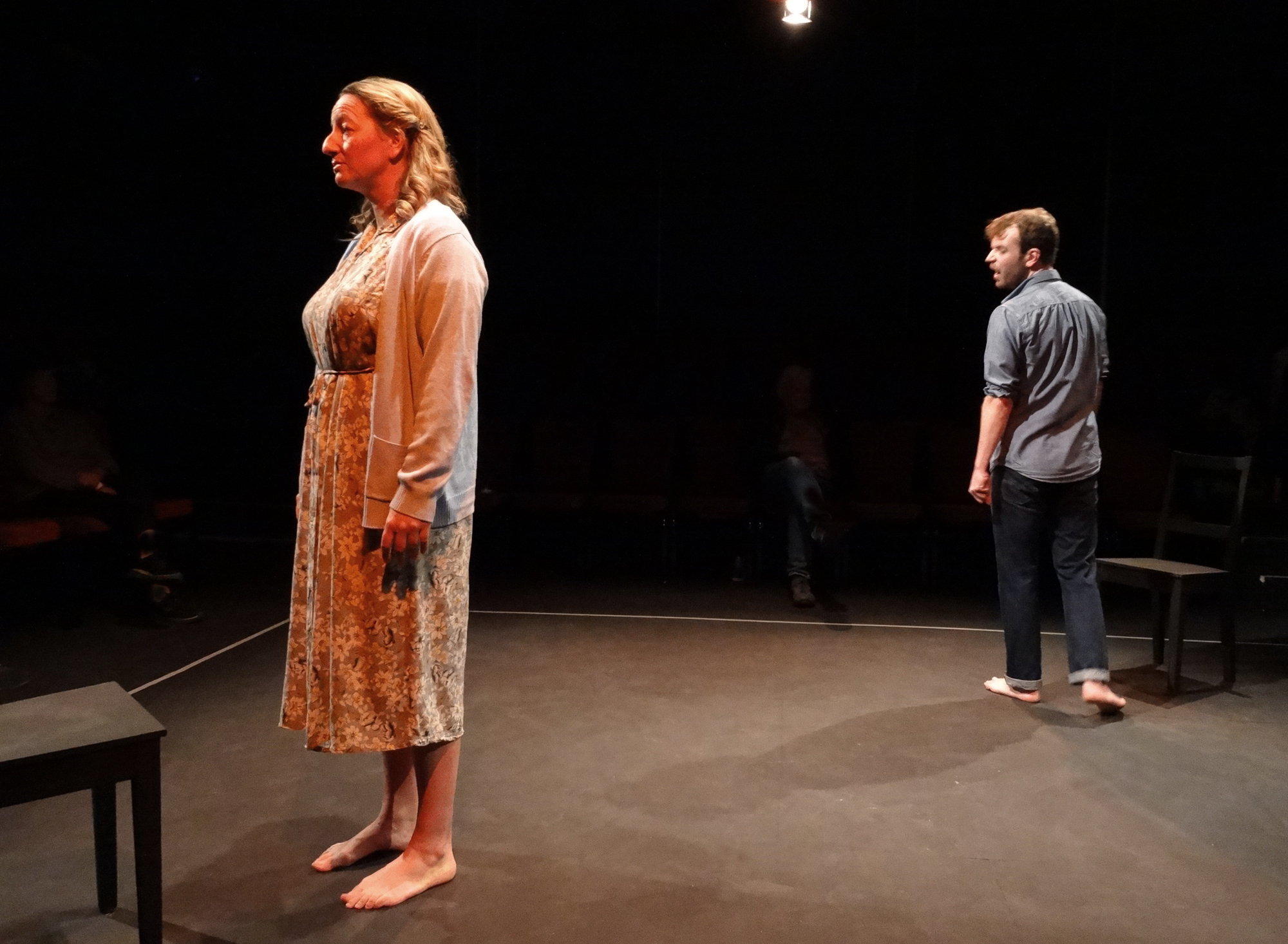 A completely bare stage, with just two actors and a pair of black-painted chairs. That’s all the audience were given in ‘You’, New Venture’s October production.