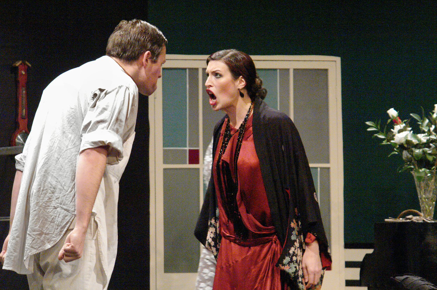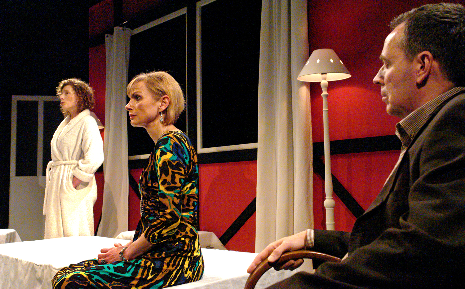 The bedroom has a bathroom adjoining, where Kate takes a bath (offstage) while Deeley talks to the visiting Anna.