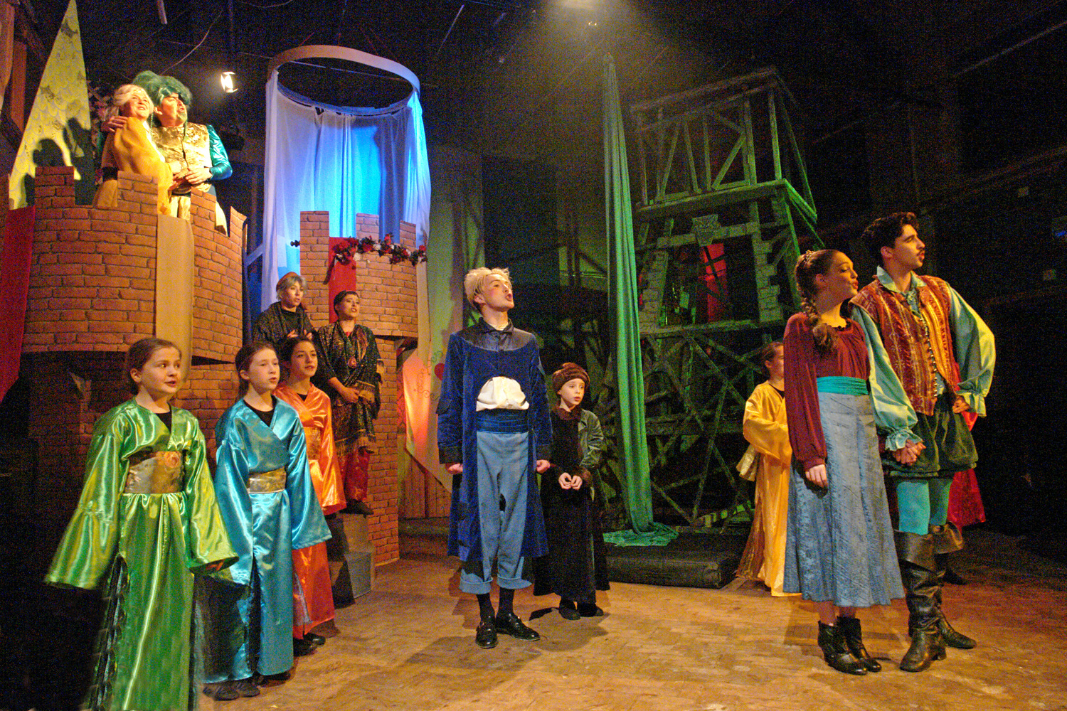 Lots of actors, including three separate troupes of children (for different nights) filled the space with colour and action. Like most fairy stories, it’s a battle between good and evil, and Gary Blair’s enormous set provided a charming castle, along with a truly frightening Evil Tower for the baddies.