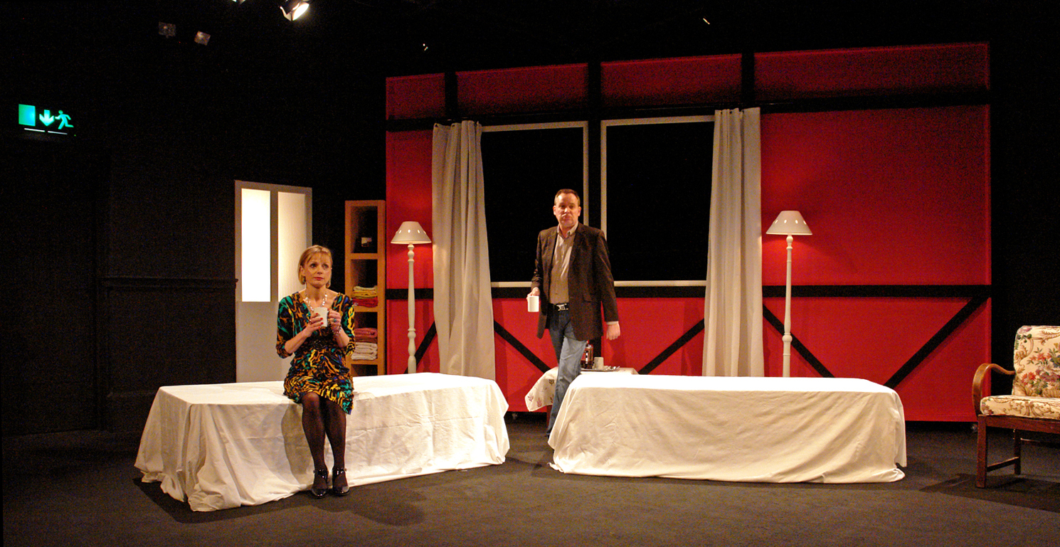 In January we staged Harold Pinter’s ‘Old Times’ at Brighton’s New Venture Theatre, and I designed the set and the lighting for the production. The action takes place in Kate and Deeley’s converted farmhouse, with Act One in the living room and Act Two in the bedroom.