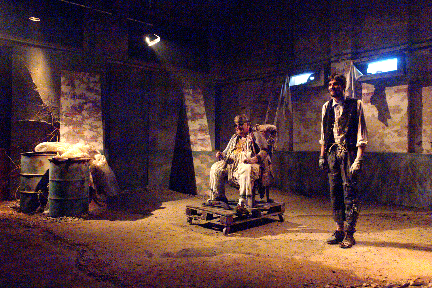 Just four characters – the monstrous Hamm, his long-suffering servant Clov, and Hamm’s parents Nagg and Nell – inhabit what seems to be an abandoned bunker or blockhouse. Gary Blair’s set is unforgettable, and it was exciting to bring it to life with the lighting, using muted amounts of illumination to create a brooding solidity in the acting space at Emporium.