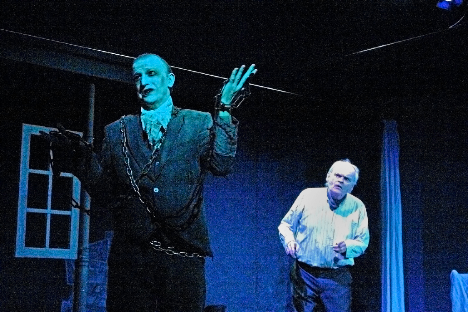 ‘A Christmas Carol’, which you can see more of on the 2015 page, has events which take place both inside rooms and outside in the street or, as spirits, on the night air.