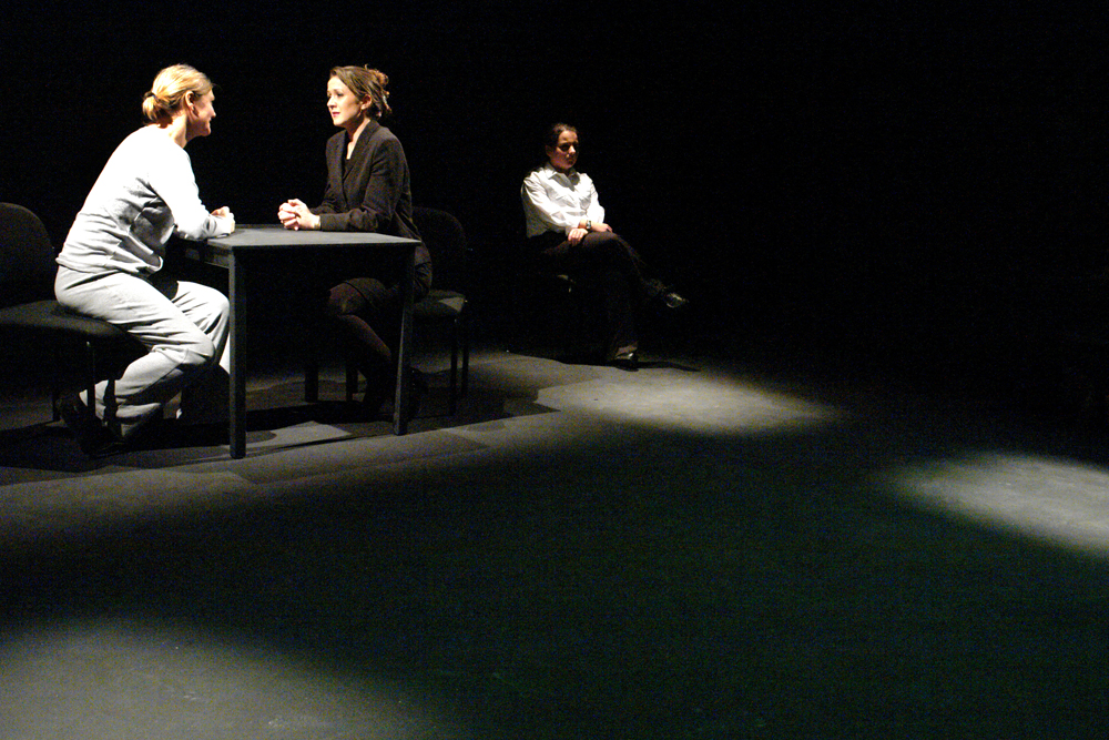 A really claustrophobic space, pooled in light in the middle of the stage, where the three actors moved round each other, jockeying for the position of ‘top dog’, for almost an hour.