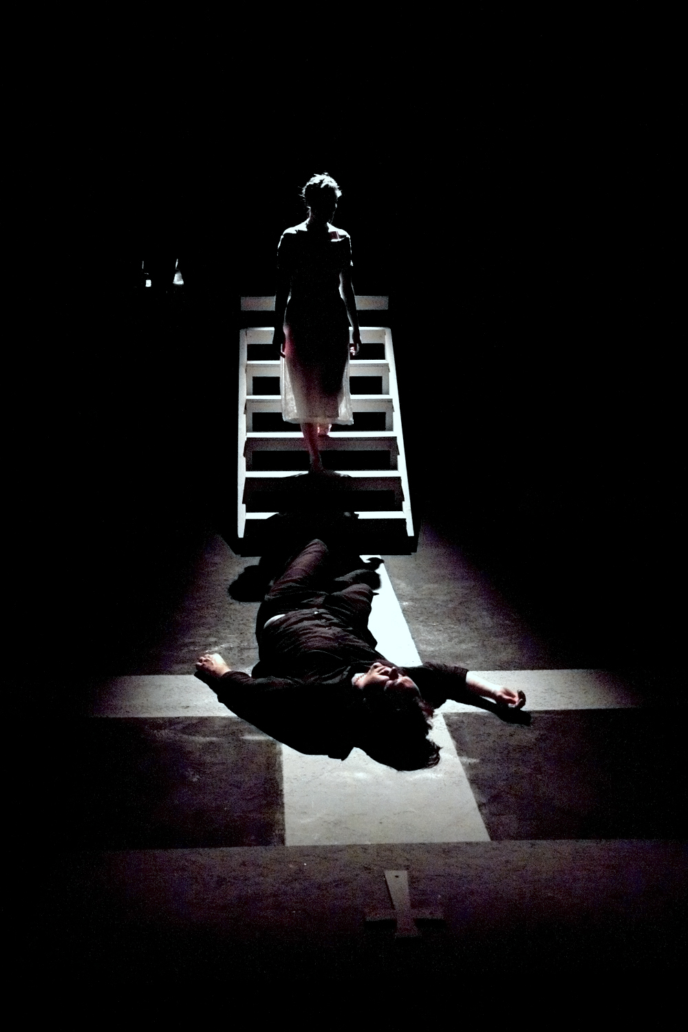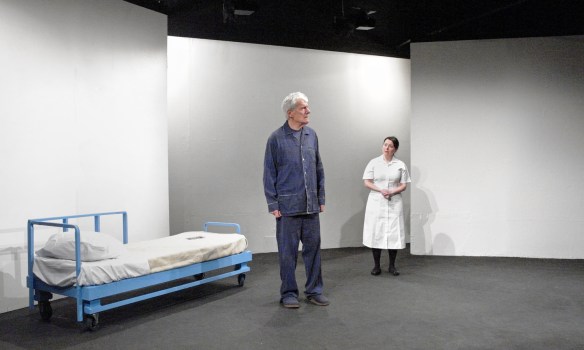 He was downstage in constant light, while she was left in darkness until her readings, when she was lit by a pool of softer, bluer light. The effect was that he was in the here-and-now, while she was a vision from his memory – or perhaps a ghost . . .