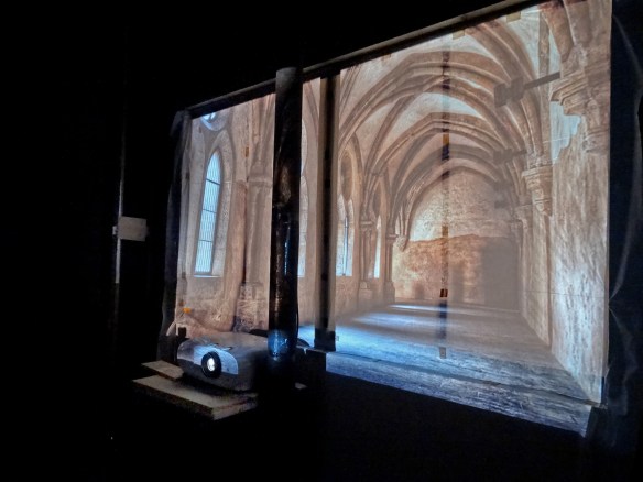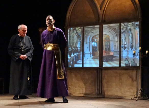 We had an arched window at the rear of the set, giving a view onto a range of back-projected images, ranging from the convent cloister and the Archbishop’s palace, to a nun’s cell – to locate the action in the foreground.