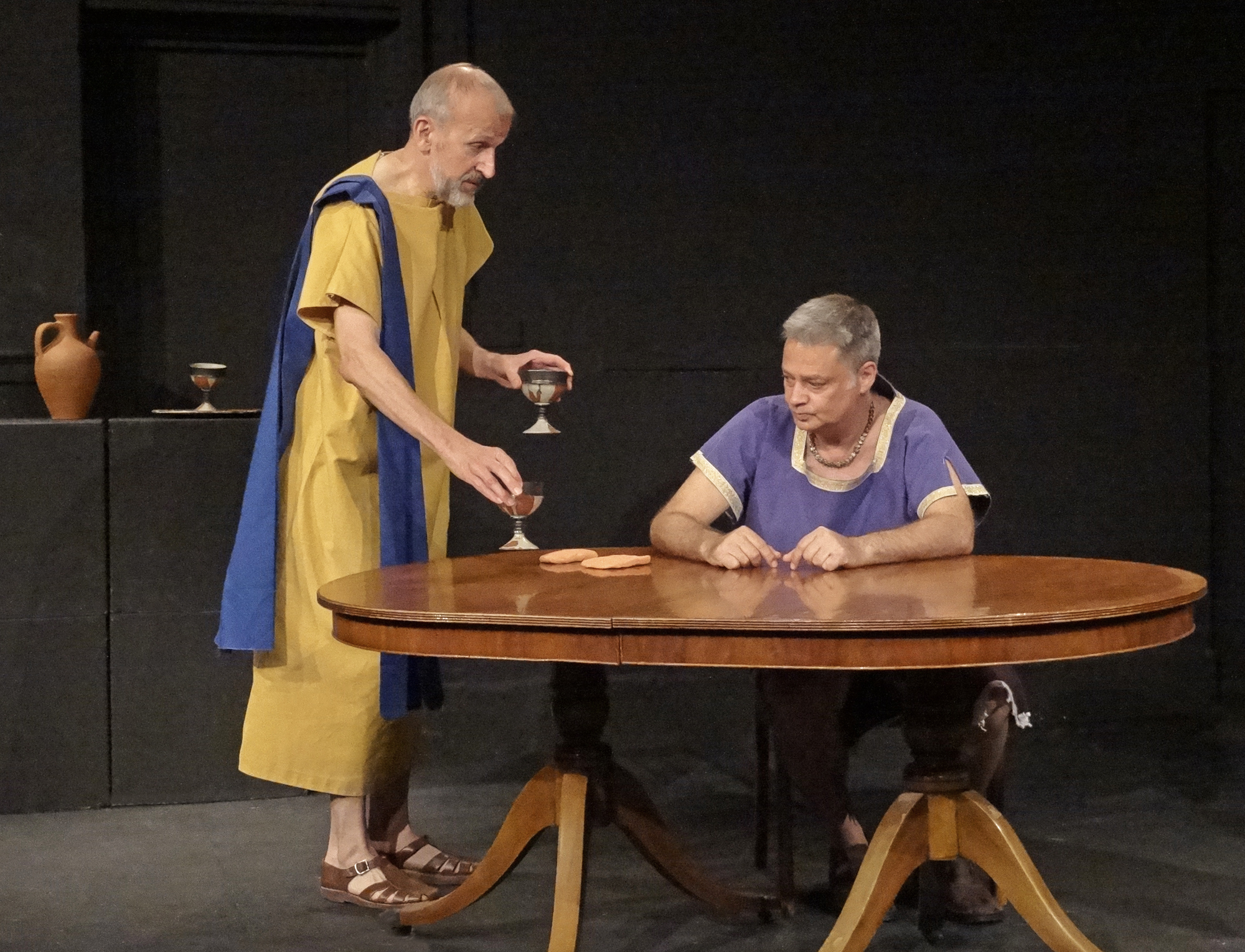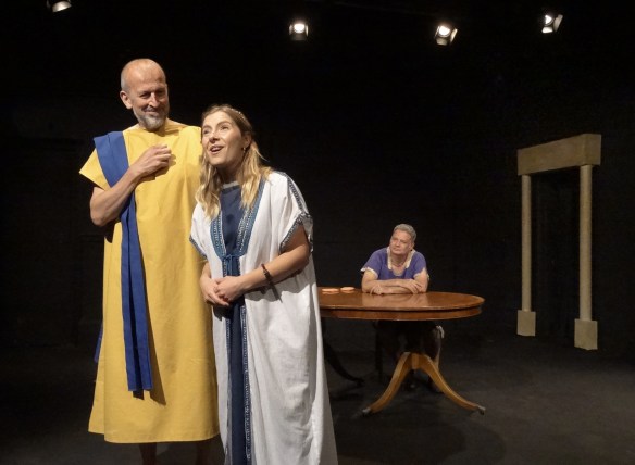We produced my play in NVT’s Studio space, as a simple black box set, with a minimum of cues to define the location: the Treasurer’s office in Agamemnon’s palace at Mycenae.